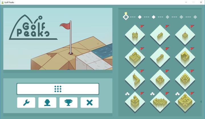 《高尔夫之巅 - Golf Peaks》的设计风格是典型的极简风格。UI十分简洁大方,更重要的是没有任何喧宾夺主影响核心玩法体验的累赘功能,好评。另外,游戏内可以直接查看成就完成情况等相关数据,不需要退出游戏去Steam那里查看,这一设计方便了全屏游戏的玩家。
