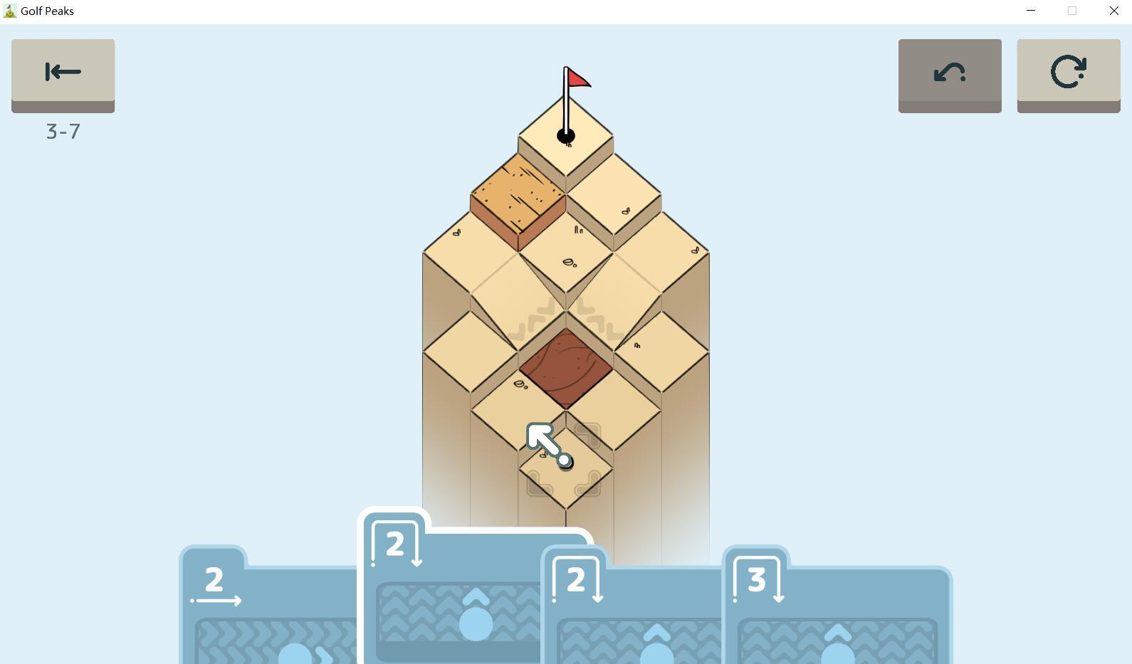 《高尔夫之巅 - Golf Peaks》这款游戏的最大亮点就在于将卡牌与高尔夫球进行了极为精妙的结合。与普通的高尔夫球游戏不同,本作中高尔夫球的移动距离和移动方式由玩家打出的卡牌来决定。在每一关中,玩家都必须利用手中的卡牌对高尔夫球的运动距离和运动方式进行安排。