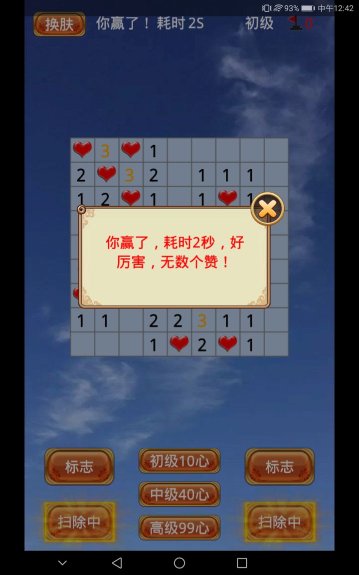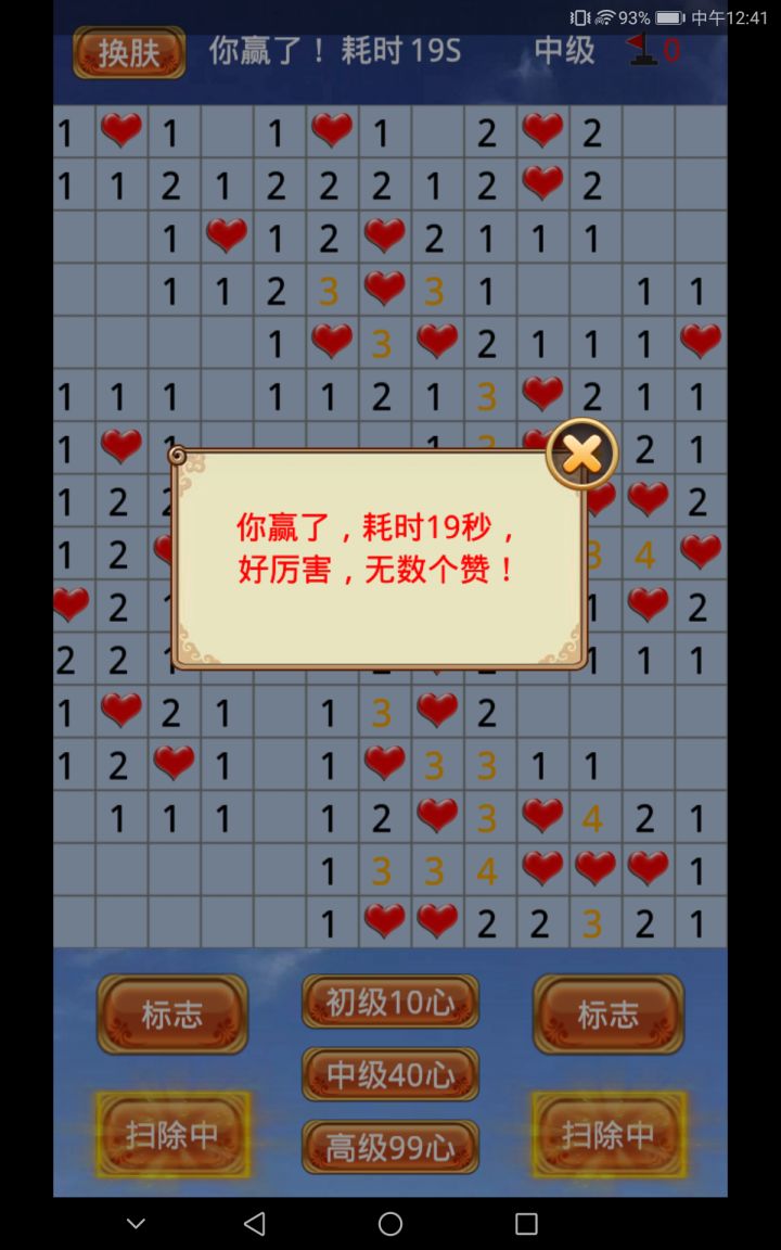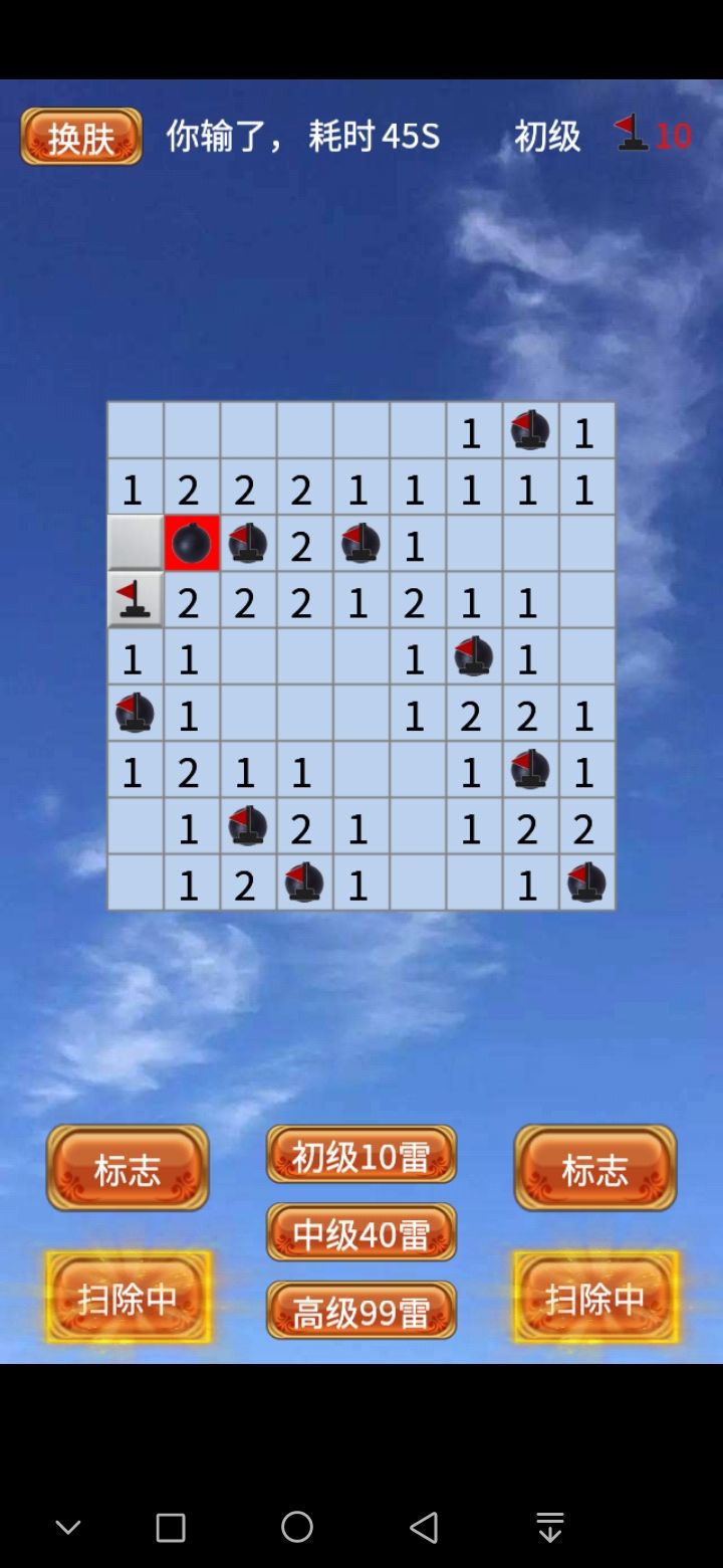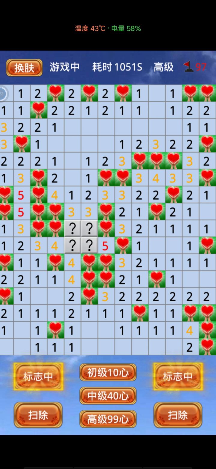 建议增加功能:1. 如果数字旁边已经标记出相应数量地雷,可以点击该数字将周围剩余无标记区域一次翻开;2. 进一步细化设置为点击时翻开相应区域,长按时标记相应区域为雷,避免来回切换翻开与标记动作,简化操作;3. 增加游戏界面缩放功能,可以放大缩小扫雷界面,便于快速选定扫雷区域,避免误触。