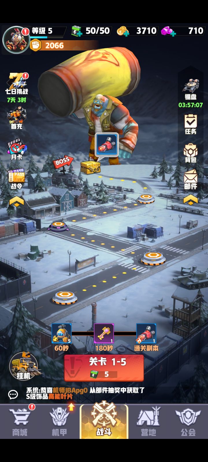 部件可以自由装备武器和饰品两类,按到机甲上就能生效,不用考虑美观因素。同界面还有无人机、强化、助战、芯片等养成内容,解锁较晚。