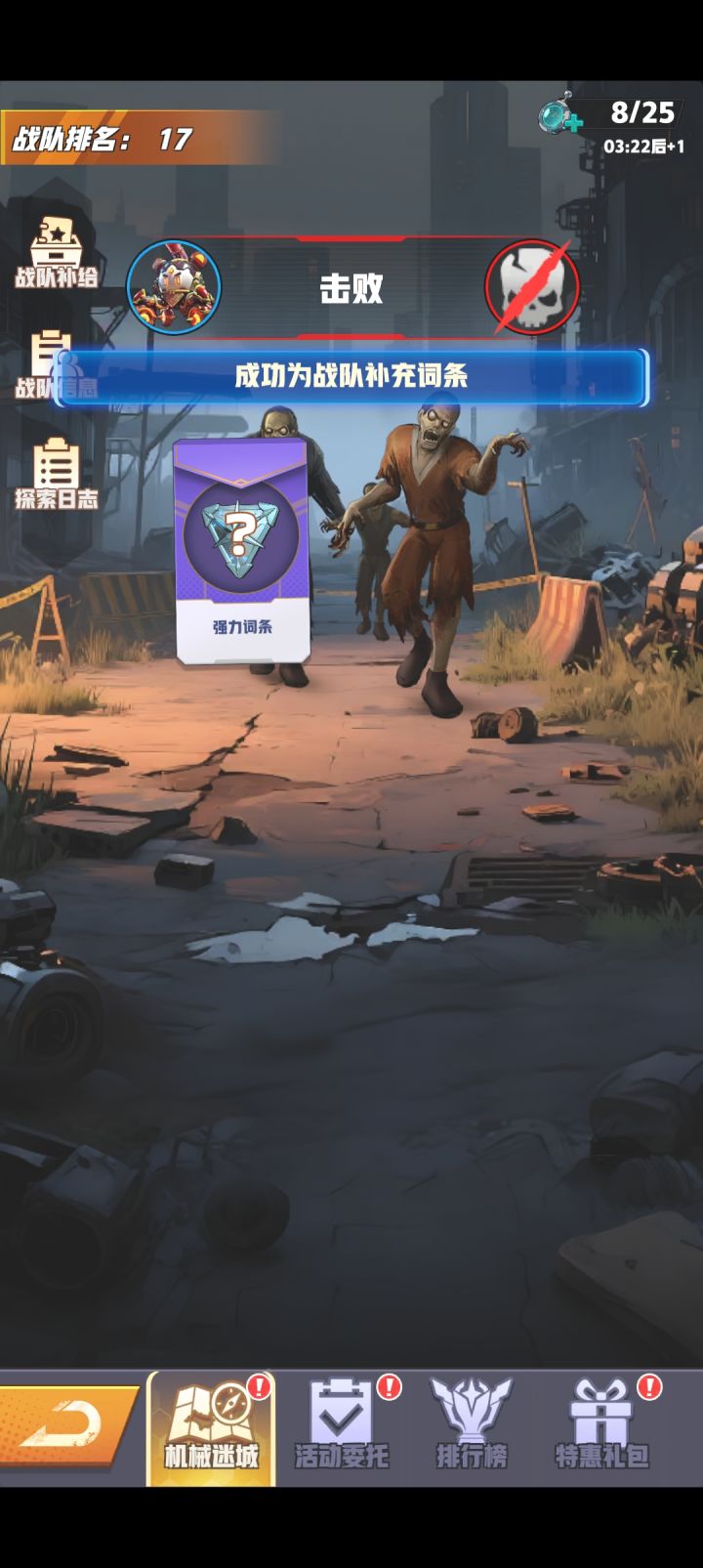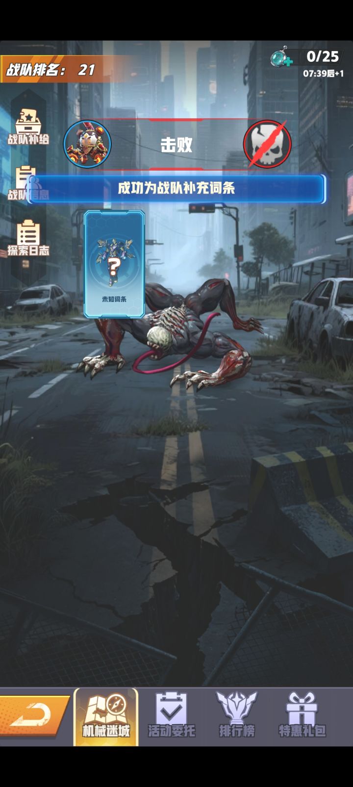 期待已久的新玩法出现了,机械迷城!!开始还是蛮期待的,等进去一玩才发现这个活动是真坑啊,首先玩法跟破晓迷宫差不多,都是打一关出来给个词条啊啊什么的,区别就是两个玩法的奖励不一样,但是机械迷城说实在的是真的有点恶心了,想要过更多的关卡,获得更多的奖励只有强化,强化的来源就是词条,恼火的是这个玩法但是词条出现的几率本来很小,然后总给一些这个机甲用不上的,词条用不上就强化不了机甲,强化不了就打不了更多的