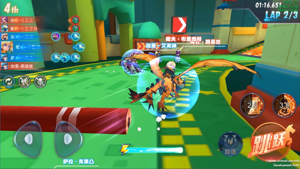 赛场中,骑士们可以在赛道的指定位置通过QTE 感受腾空滑翔的快感~~~ 当 QTE 出现时 小球开始滚动,点击屏幕任意位置即可!(当小球对准黄条点击时可触发“perfect”)成功触发QTE 骑士可瞬间提升速度!!! 小技巧:perfect的加速可直接提升骑士基础移动速度的50%↑↑↑!!!!