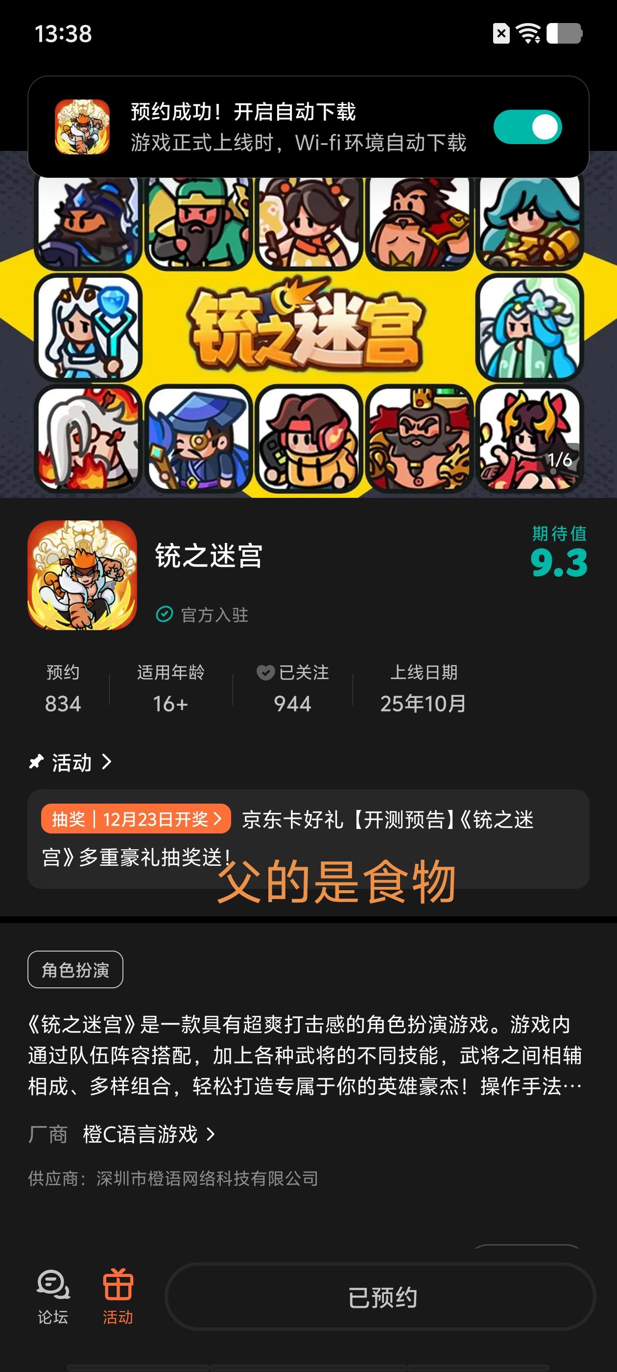 各位热爱三国与角色扮演游戏的主公们,注意啦!超爽打击感RPG《铳之迷宫》预约通道正式开启!当三国乱世遇上奇幻设定,当经典武将搭配多样技能,一场守护世界的热血冒险即将启程,现在预约不仅能抢占先机,更有丰厚抽奖福利等你拿!开测时间:2025年12月18日【京东卡抽奖活动】▶ 参与方式1.点击关注发帖账号并预约《铳之迷宫》且发新帖晒截图2.在本帖下方评论区分享发帖链接即可【奖品发放】到达开