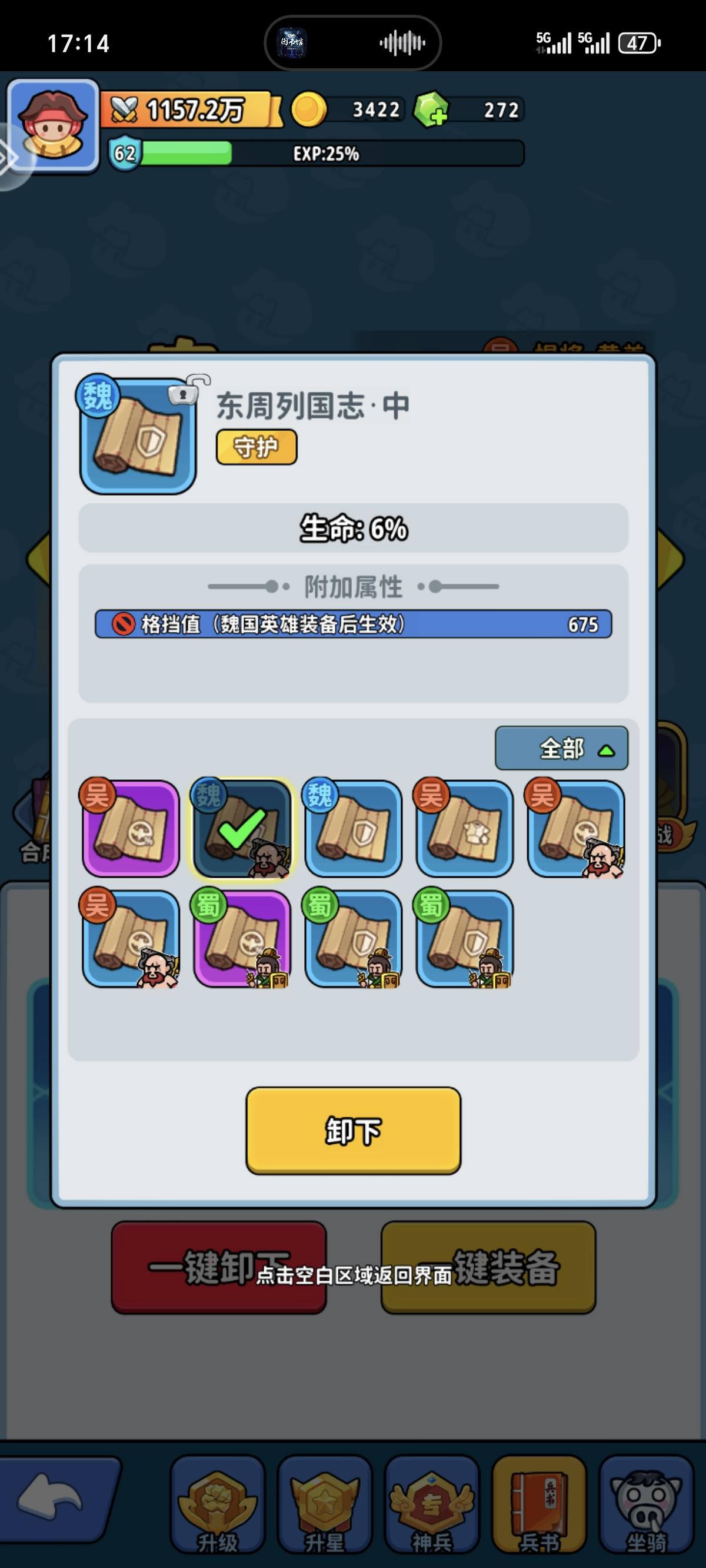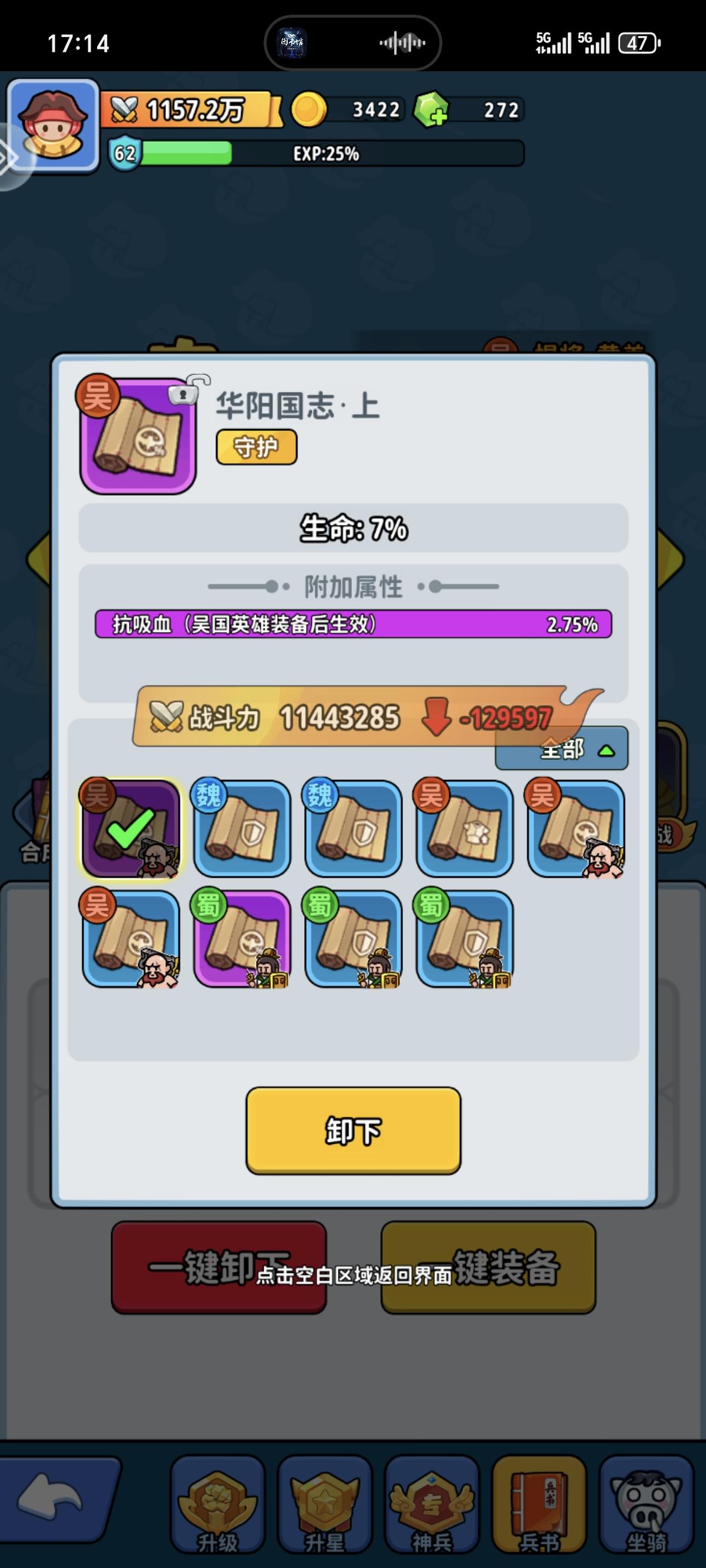 原用兵书是后面那个图,新欢一本紫色吴国的兵书,反而战力下降了,数据问题