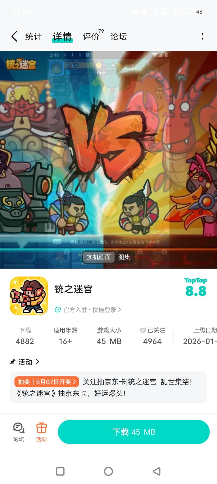 三国猛男们,集合了!村庄被毁,黑暗势力要灭世——关羽扛起双枪,张飞架起连弩,诸葛亮掏出神秘铳械……这不是你听过的三国,这是 《铳之迷宫》 !🔥 超爽打击感 + 阵容自由搭配🔥 武将技能相辅相成,轻松打出飘逸连招🔥 走位风骚,可攻可守,萌新也能秀翻天🎁 福利时间随机抽取1位幸运的主公,送出【京东卡】一张!📅 活动时间即日起 —— 2026年5月7日 23:59✍️ 参与方式(超