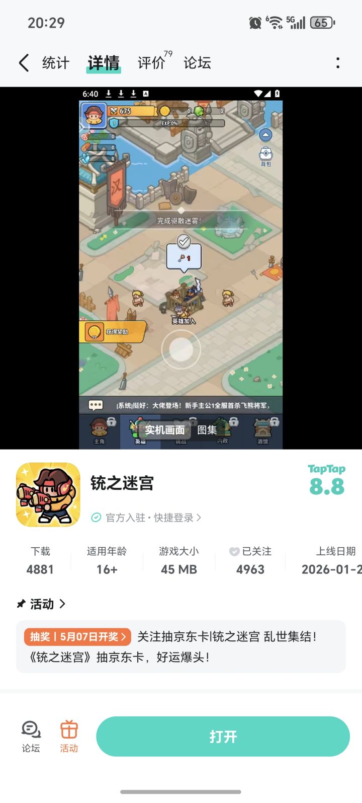 三国猛男们,集合了!村庄被毁,黑暗势力要灭世——关羽扛起双枪,张飞架起连弩,诸葛亮掏出神秘铳械……这不是你听过的三国,这是 《铳之迷宫》 !🔥 超爽打击感 + 阵容自由搭配🔥 武将技能相辅相成,轻松打出飘逸连招🔥 走位风骚,可攻可守,萌新也能秀翻天🎁 福利时间随机抽取1位幸运的主公,送出【京东卡】一张!📅 活动时间即日起 —— 2026年5月7日 23:59✍️ 参与方式(超