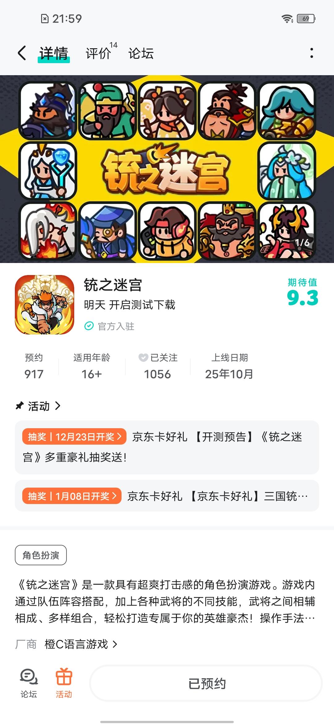 各位热爱三国与角色扮演游戏的主公们,注意啦!超爽打击感RPG《铳之迷宫》预约通道正式开启!当三国乱世遇上奇幻设定,当经典武将搭配多样技能,一场守护世界的热血冒险即将启程,现在预约不仅能抢占先机,更有丰厚抽奖福利等你拿!开测时间:2025年12月18日【京东卡抽奖活动】▶ 参与方式1.点击关注发帖账号并预约《铳之迷宫》且发新帖晒截图2.在本帖下方评论区分享发帖链接即可【奖品发放】到达开