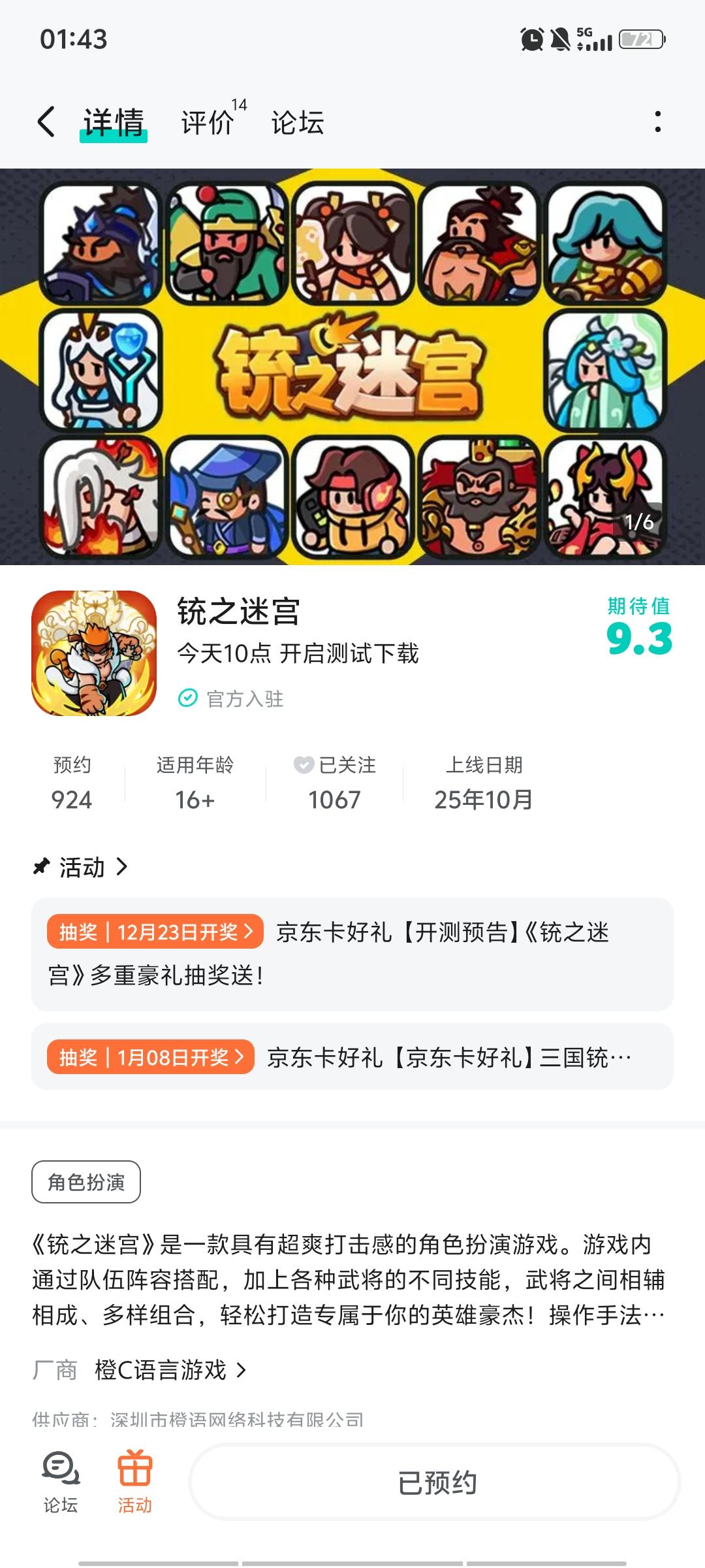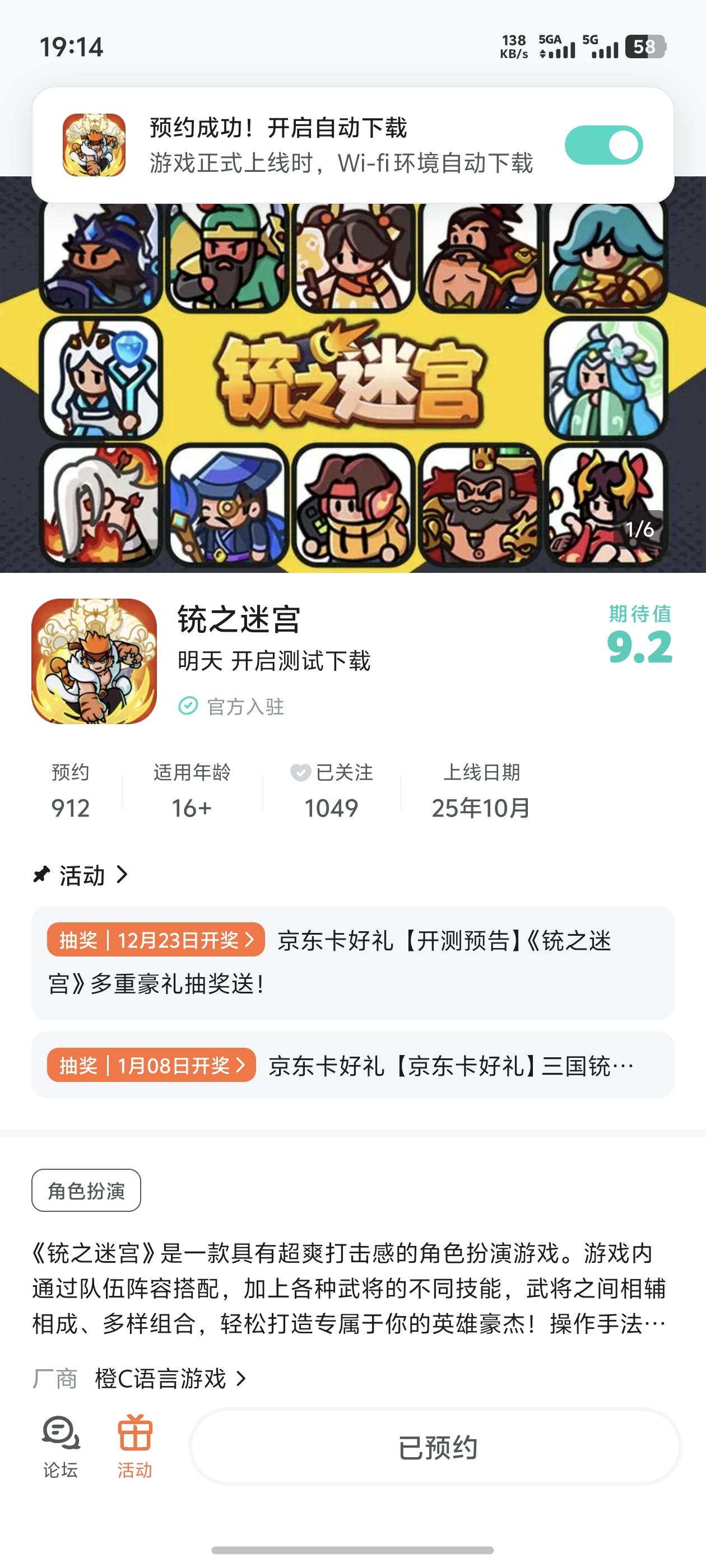 各位热爱三国与角色扮演游戏的主公们,注意啦!超爽打击感RPG《铳之迷宫》预约通道正式开启!当三国乱世遇上奇幻设定,当经典武将搭配多样技能,一场守护世界的热血冒险即将启程,现在预约不仅能抢占先机,更有丰厚抽奖福利等你拿!开测时间:2025年12月18日【京东卡抽奖活动】▶ 参与方式1.点击关注发帖账号并预约《铳之迷宫》且发新帖晒截图2.在本帖下方评论区分享发帖链接即可【奖品发放】到达开