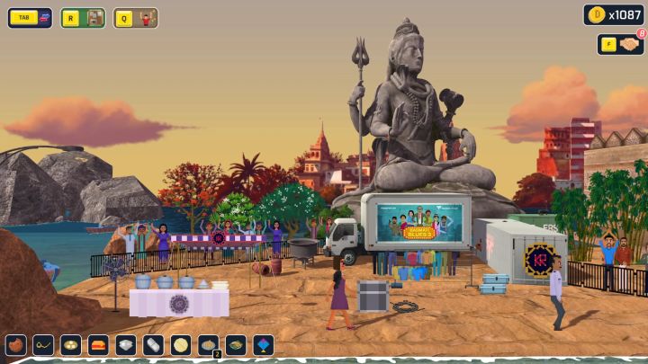 在游戏里面,你能买到的美食看起来都比较有食欲,而且种类多且庞杂,感觉恨不得把特色美食都塞进这个游戏,告诉你又多少特色。特别是有个斗舞的小游戏,类似踩方块的按键游戏,两旁的人在斗舞,中间会下落各式各样的印度食物,不仅精巧鲜艳,看着就很有食欲。没有墉子那般感觉,但缺少玛莎拉的美食我不是很认可。