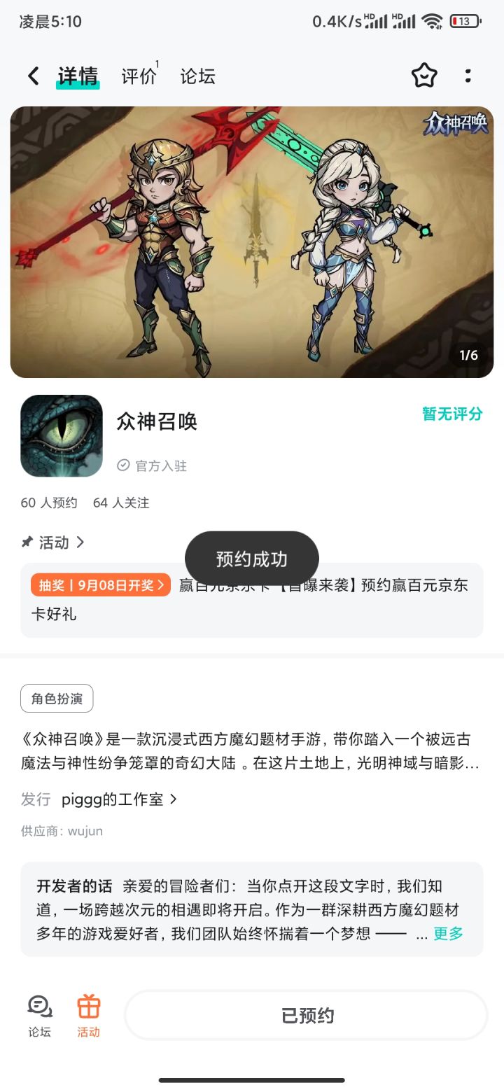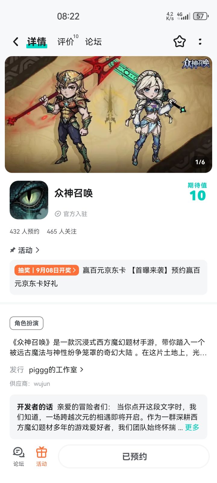 超多职业,等你来选~【京东卡抽奖活动】▶ 参与方式1.点击关注《众神召唤》并发新帖晒截图2.在本帖下方评论区分享发帖链接即可【奖品发放】到达开奖时间后,由taptap系统随机抽取符合要求的幸运玩家,自动发放兑换码(对于同一账号大量故意发布评论刷楼层导致其他玩家中奖概率降低的行为的用户,将会可能被取消参与资格!)▶ 活动奖励活动结束后将抽取1位幸运儿获得1张100元京东卡【官方客服