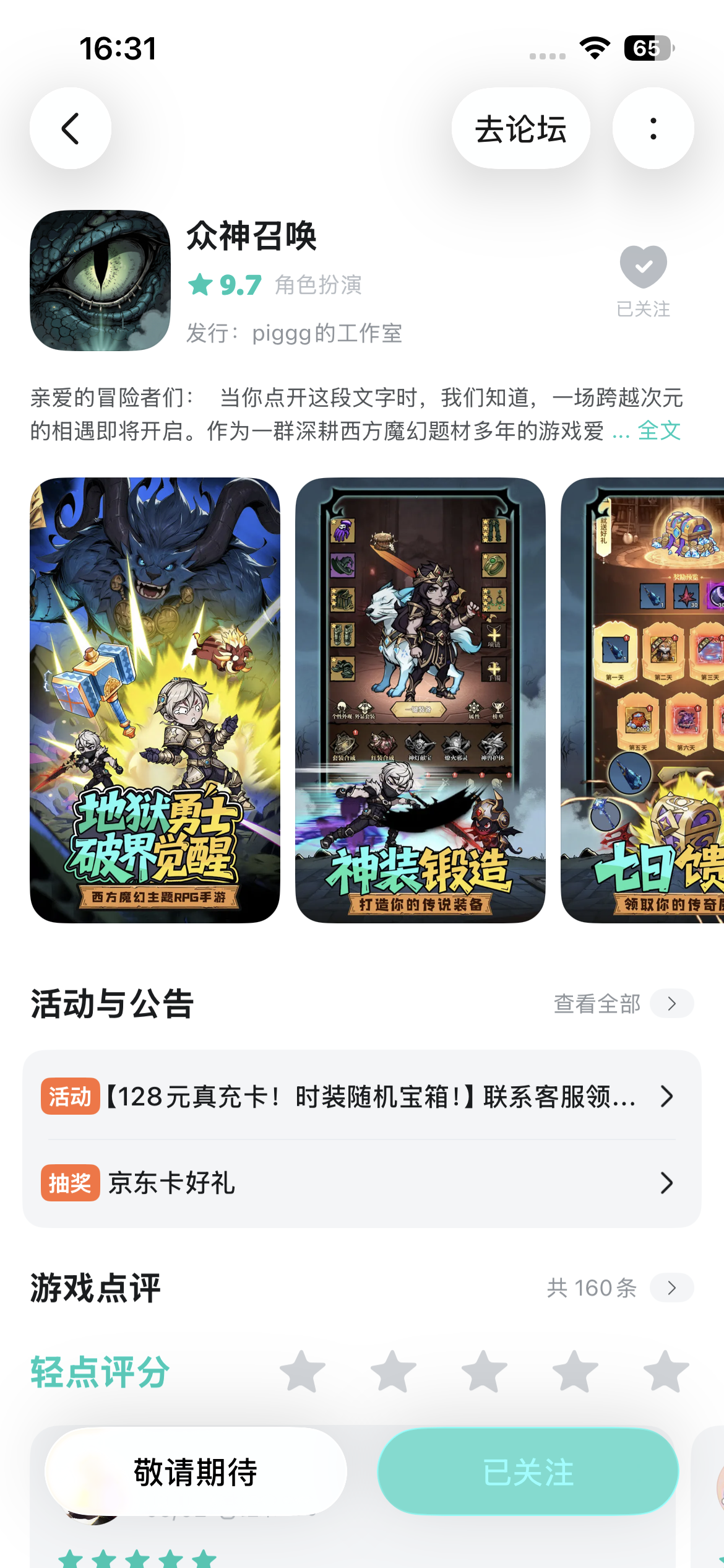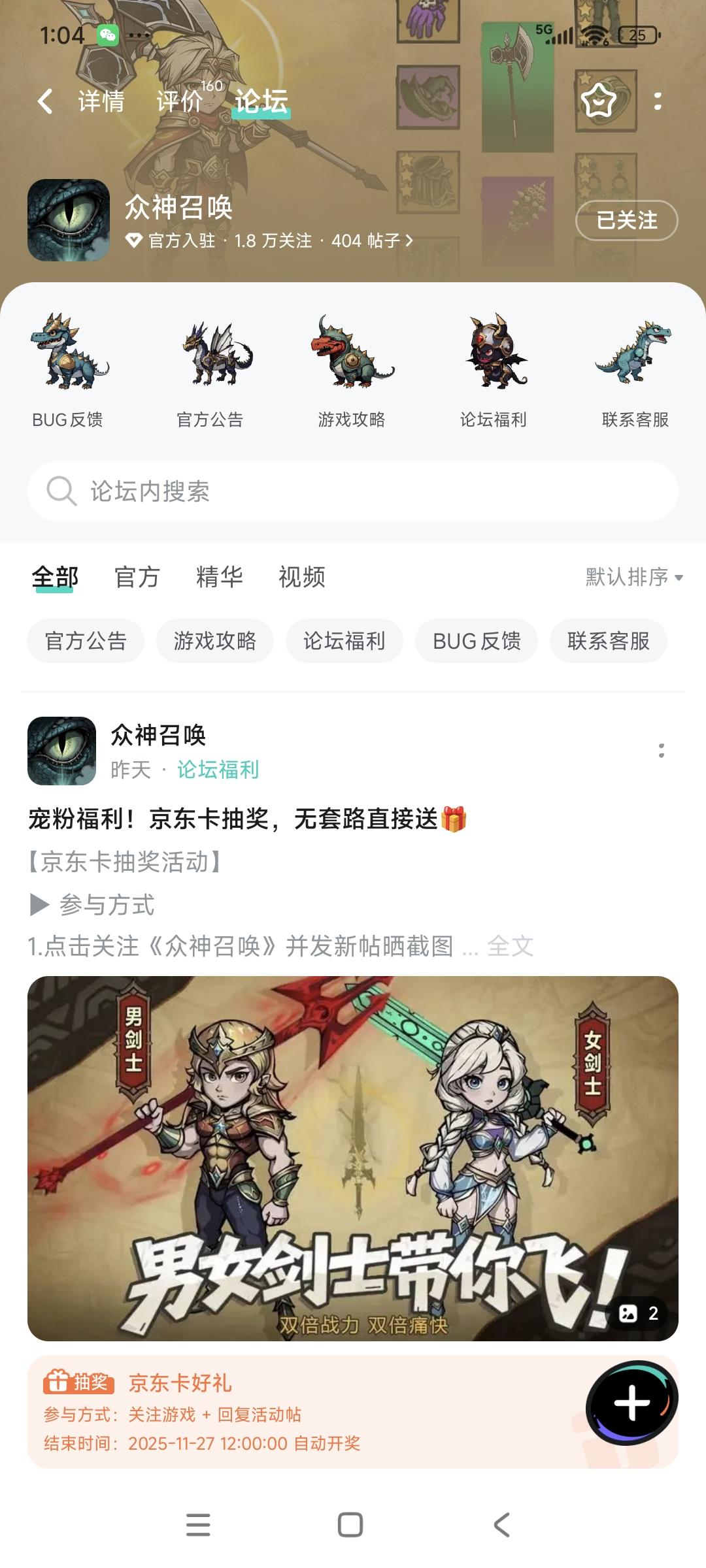【京东卡抽奖活动】▶ 参与方式1.点击关注《众神召唤》并发新帖晒截图2.在本帖下方评论区分享发帖链接即可【奖品发放】到达开奖时间后,由taptap系统随机抽取符合要求的幸运玩家,自动发放兑换码(对于同一账号大量故意发布评论刷楼层导致其他玩家中奖概率降低的行为的用户,将会可能被取消参与资格!)▶ 活动奖励活动结束后将抽取1位幸运儿获得1张100元京东卡关注社区解锁更多机缘:📢 第一