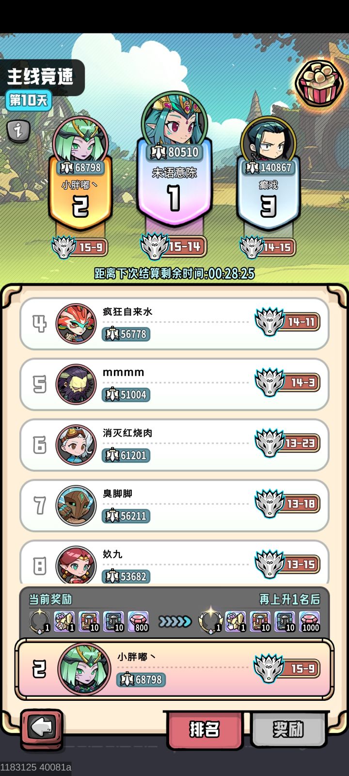 纯萌新燃尽了,小氪54搞了张月卡和几个六块礼包。最终倒在了15-10,叼BOSS三条命实在是刮不动了,回合数不够用我真服了。好友帮助也在CD,不过能混个第二我是没想到的,第三名是我这个区氪的最多的但他不知道为什么突然间不怎么推主线了。