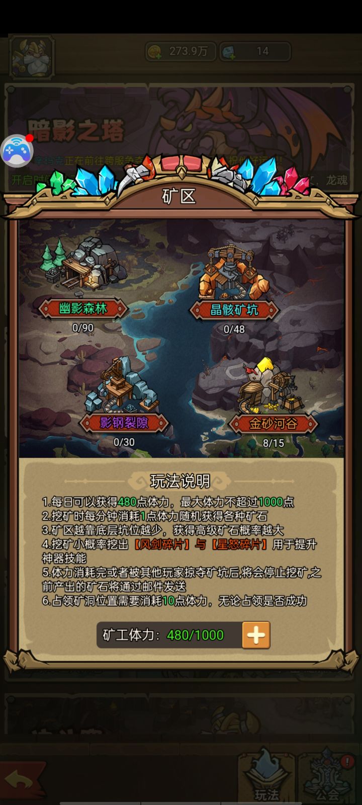 采矿的奖励提高点,最好是能采到钻石💎,完了就是现在的掠夺不是真正的掠夺,要名副其实的掠夺!现在是用体力采矿每天基本就是采一回,如果改为用随从去采矿【随从采矿需要随从体力,每个随从每天都有固定的体力用完就得等第二天自动回满,防止个别玩家用自己最强的随从无限抢矿采矿】,完了派自己的随从去驻守【驻守的时候可以放很多随从,(别人强大,一天采好几个矿点,自己弱小用自己所有力量守好自己的一亩三分地