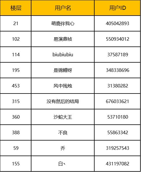 接下来让我们恭喜参与本次活动中奖的玩家,中奖名单如下: