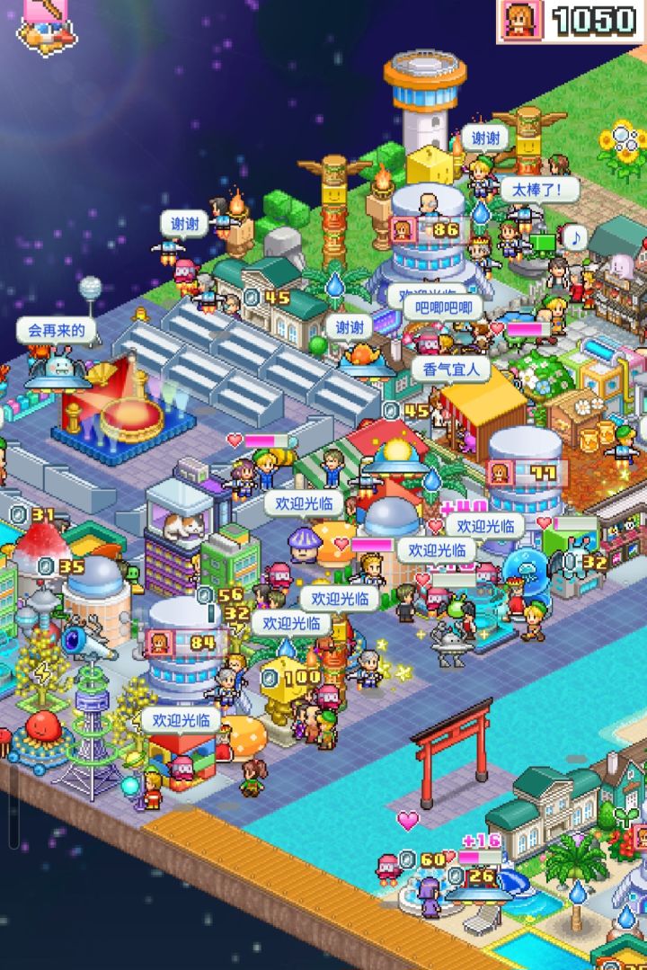 《探险异星飞行队》是一款由开罗制作的像素风模拟建造游戏,从ui和画面来看,本作只是做了单纯的移植,主页面并没有设置的选项,得进游戏才能设置游戏音量。玩家的目的也很简单,利用机器人来建造和收集资源,然后在开拓领地的路途中会遭遇到怪兽,这时候就派遣飞行队去清除,在这个过程中,提高星球的人口以及居民的好感度,这样才能继续升级殖民地等级,和其他的开罗游戏差不多,都是以经营为主要目的。所以说算是一款老作品,
