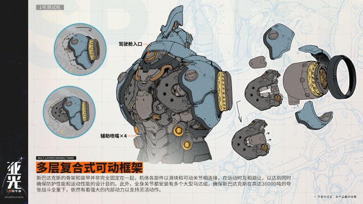 斯巴达克斯的骨架和装甲并非完全固定在一起,机体各部件以滑块和可动关节相连接,在运动时互相避让,以达到同时确保防护性能和运动性能的设计目的。此外,全身关节都安装有多个大型马达组,确保斯巴达克斯在高达36000吨的夸张战斗全重下,依然有着强大的内部动力以支持灵活动作。#亚光 #国模 #机甲 #机战 #战棋游戏