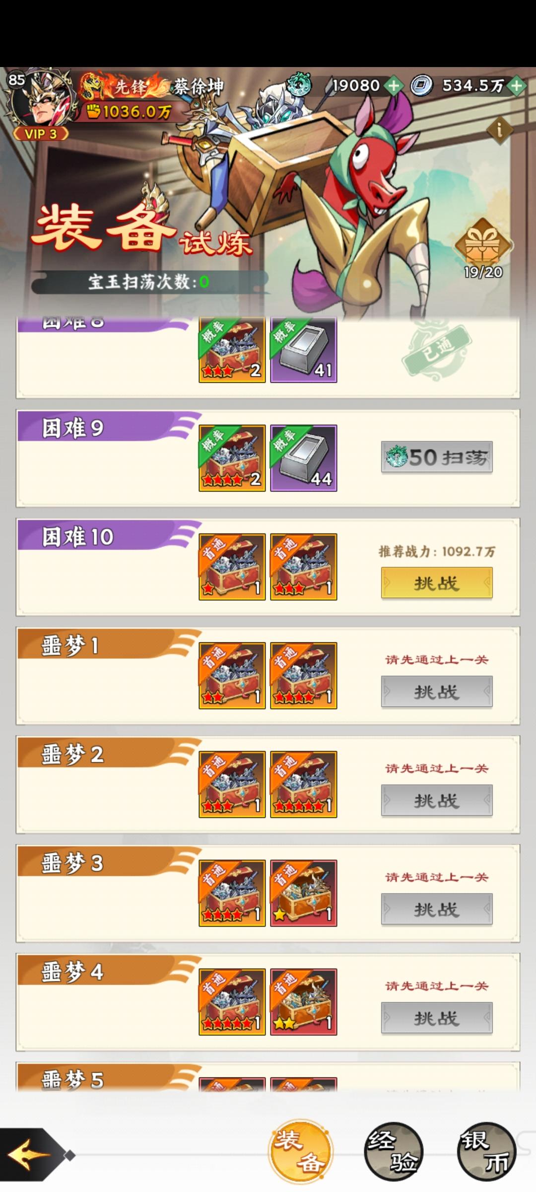 装备试炼打到困难10,有没有懂的这个难度。我在华为服7区。