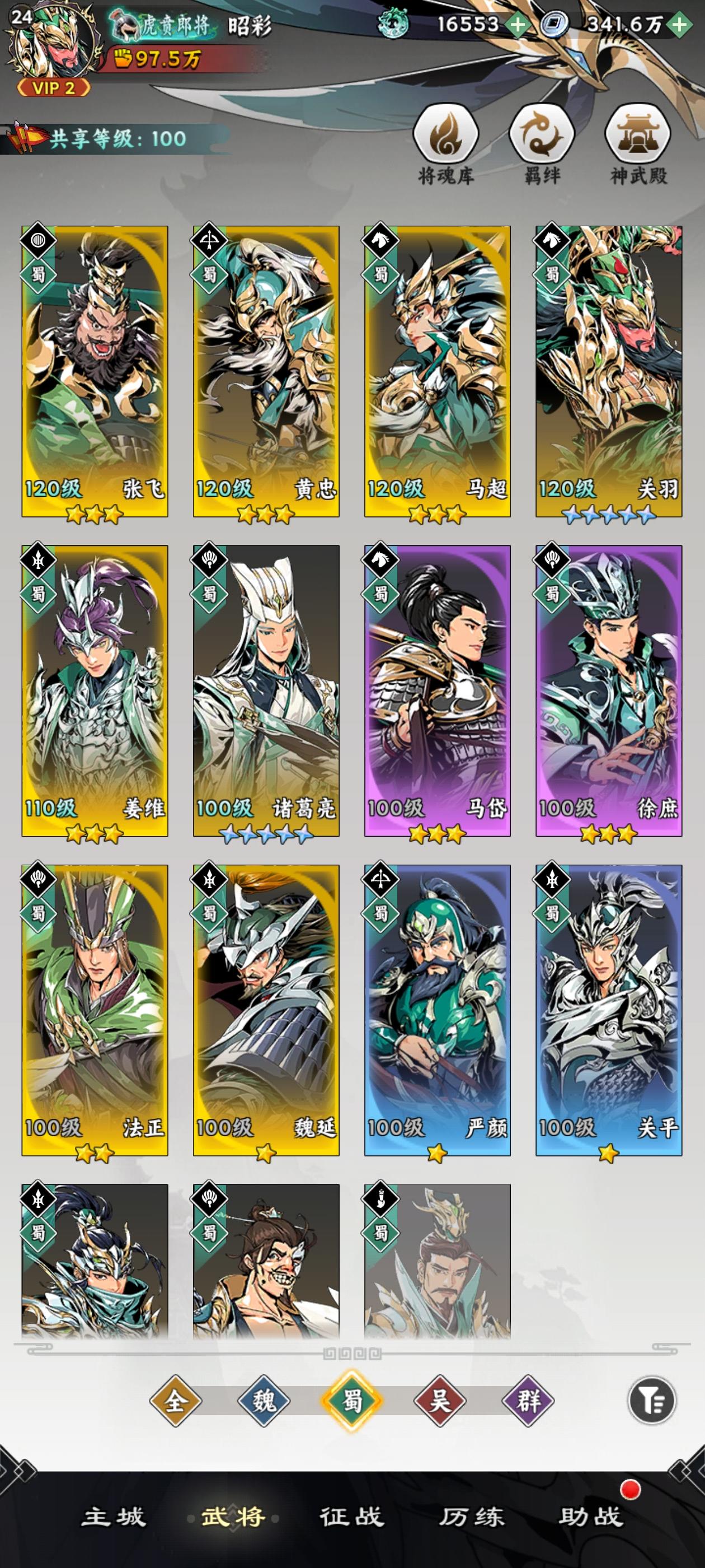 穷哥们不卡阵容和顶级五虎阵容。已越战89%