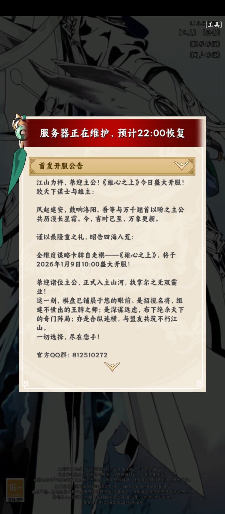 宝子们!《雄心之上》1 月 8 日 10:00 全平台预下载,1 月 9 日 10:00 正式首发!海量首发福利同步上线,期待与你相遇!我们《雄心之上》准备的福利直接把 “新手爽感” 拉满 —— 签到抽卡、开局千抽、S + 神将、通关资源、平台专属累签,这波直接焊死 “开局即巅峰”!福利清单接好👇新手玩雄心之上有那些福利福利1:TapTap官方专属礼包码首先各位主公可以去TapTap官方下载