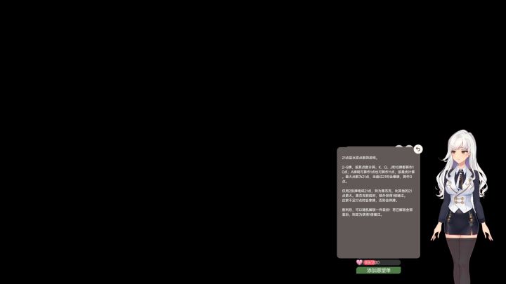 本作目前表现出来的情况是中规中矩的,仅仅只是在大众熟知的玩梗桌宠游戏中加了一个点击计数系统和21点的小游戏,名字也没有如《你的老婆》那么更加夺人眼球,不然仅凭这点取巧的玩梗就走不远,也不如其他有ip加持的挂机游戏,希望后续作者能在装扮的多样性和服装多样性上深挖,再给美少女桌宠增添更多的互动点、互动的动作或者考虑开通一下创意工坊让大佬放飞自我。
