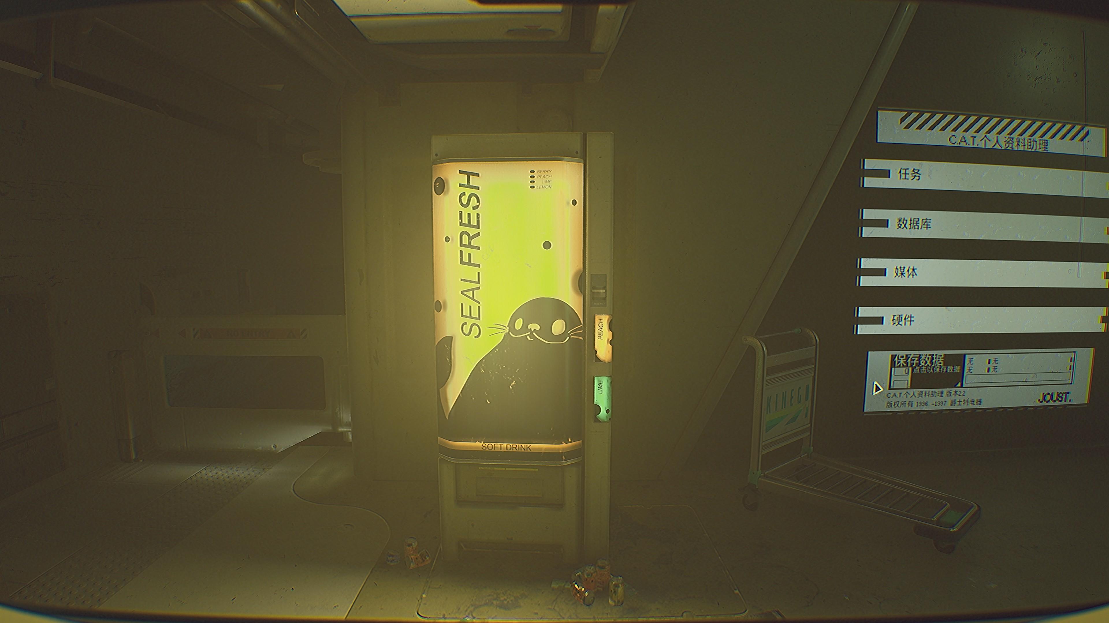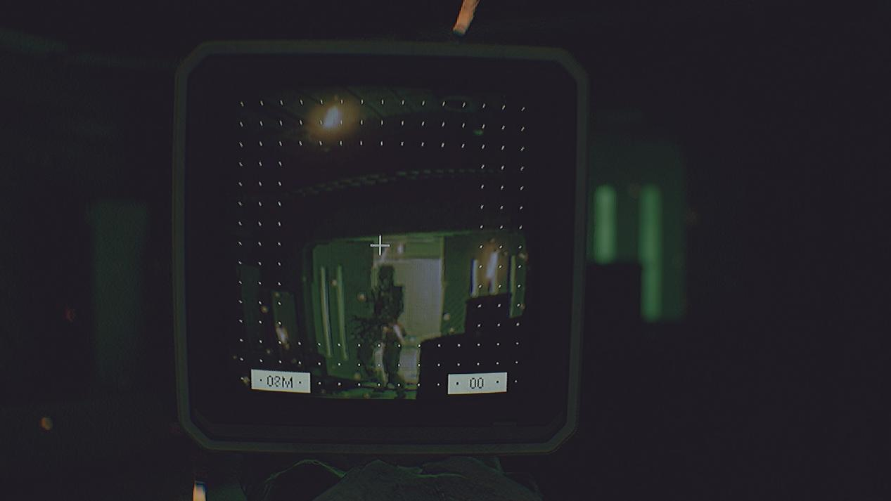C.A.T的使用方式是在检视中点击机身上的按钮,这个设计很有趣。使用C.A.T与路过的大显示屏交互可以存档,还能获得任务提示。游戏的解谜难度不高,笔者感觉难度主要是在较大的地图中,潜行躲避敌人寻找线索(记地图比较困难)。