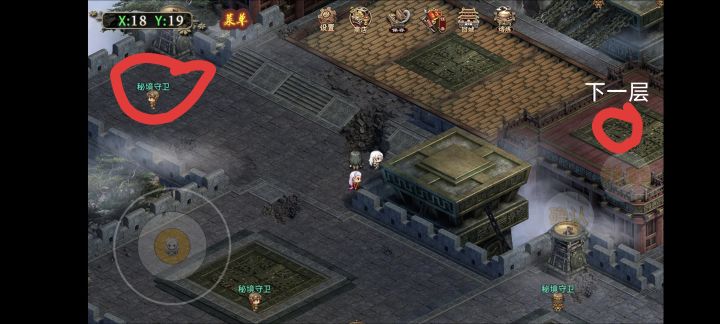 第一层杀最左列中间小怪后出现下一层第二层直接到此位置点确认,进入第三层