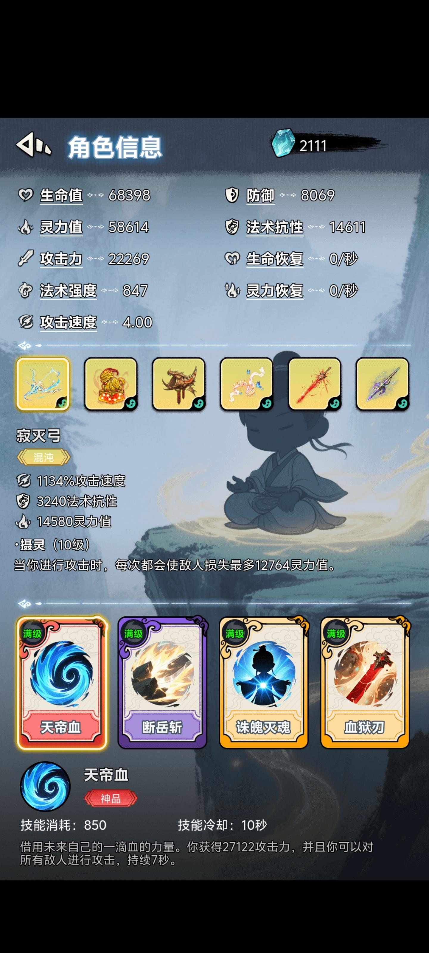 寂灭弓节省时间用的,可替换。成型后属性优先攻击>防御>血量