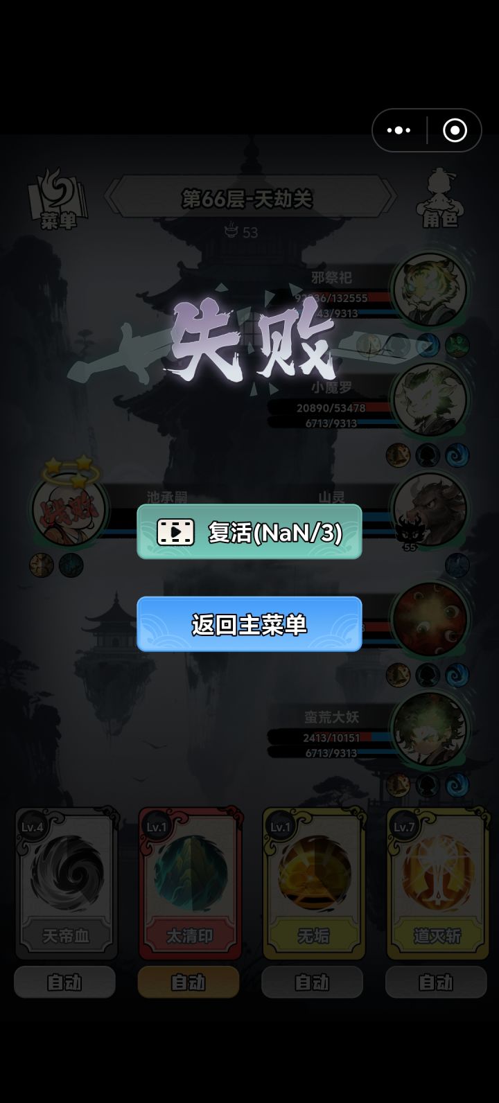 这个程度可以一直打下去刷到装备把技能刷满就好了(神兵不是混沌的也可以)要注意的是boos关的负面效果不要的有反弹物理伤害不让恢复血两个主动技能不能用每次使用技能随机不让用技能角色用免疫变形的宠物技能在选宠物界面宠物头像的右上角放大镜有没有宠物都可以有的话前期打的快点装备可以升阶6个还是8个能把一个装备升一阶混沌升满之后就不能再升了