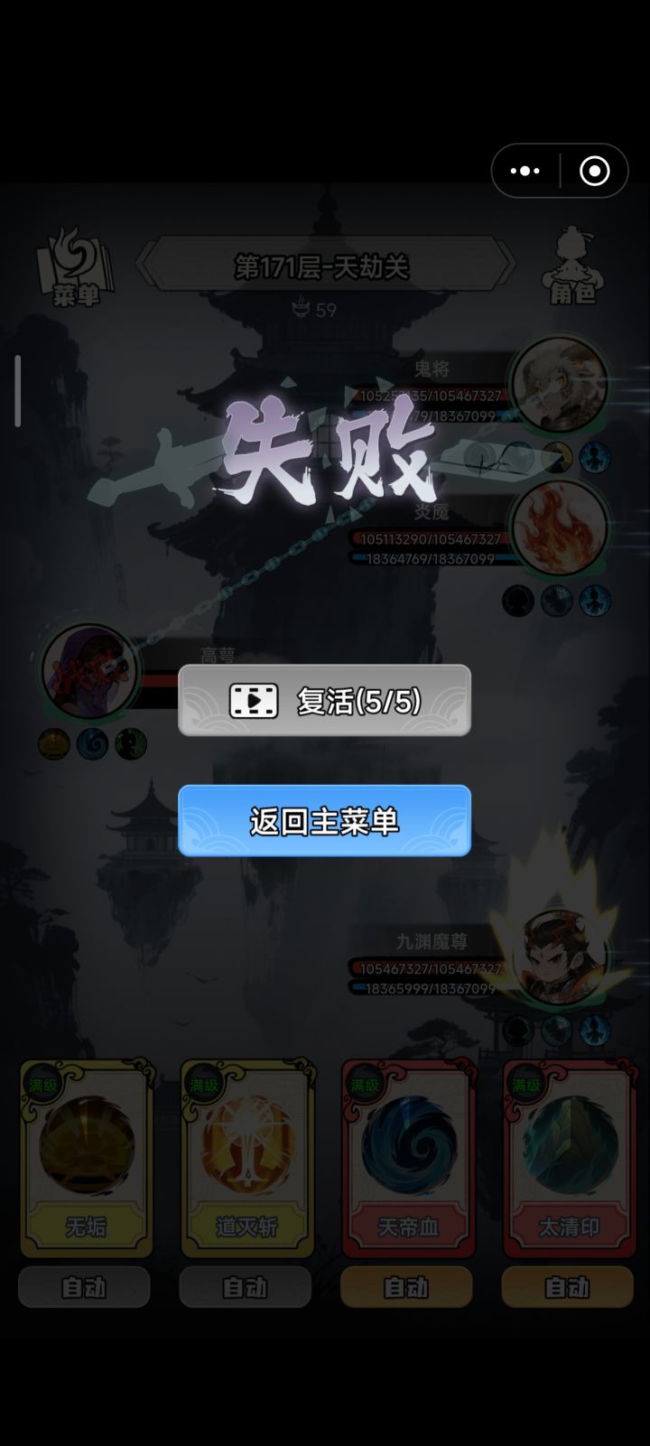玩了半个月吧,差不多可以毕业了,技能装备就这样吧。吸血刀和护甲是必须的,另外一个看情况吧。只要有一件装备,护甲和吸血刀能够刷出来回血和攻击就行了。只升级这一件装备就行了。其实如果甲和刀能够刷出来回血和攻击的话就不需要第3件神兵了,复活的话,其实没用的,比他化自在差远了,因为很多龙会直接开场控你,有一次复活没用的。很多大佬应该用的都是他化自在,会直接解控。这个才是核心。复活其实没什么用的,复活了也是
