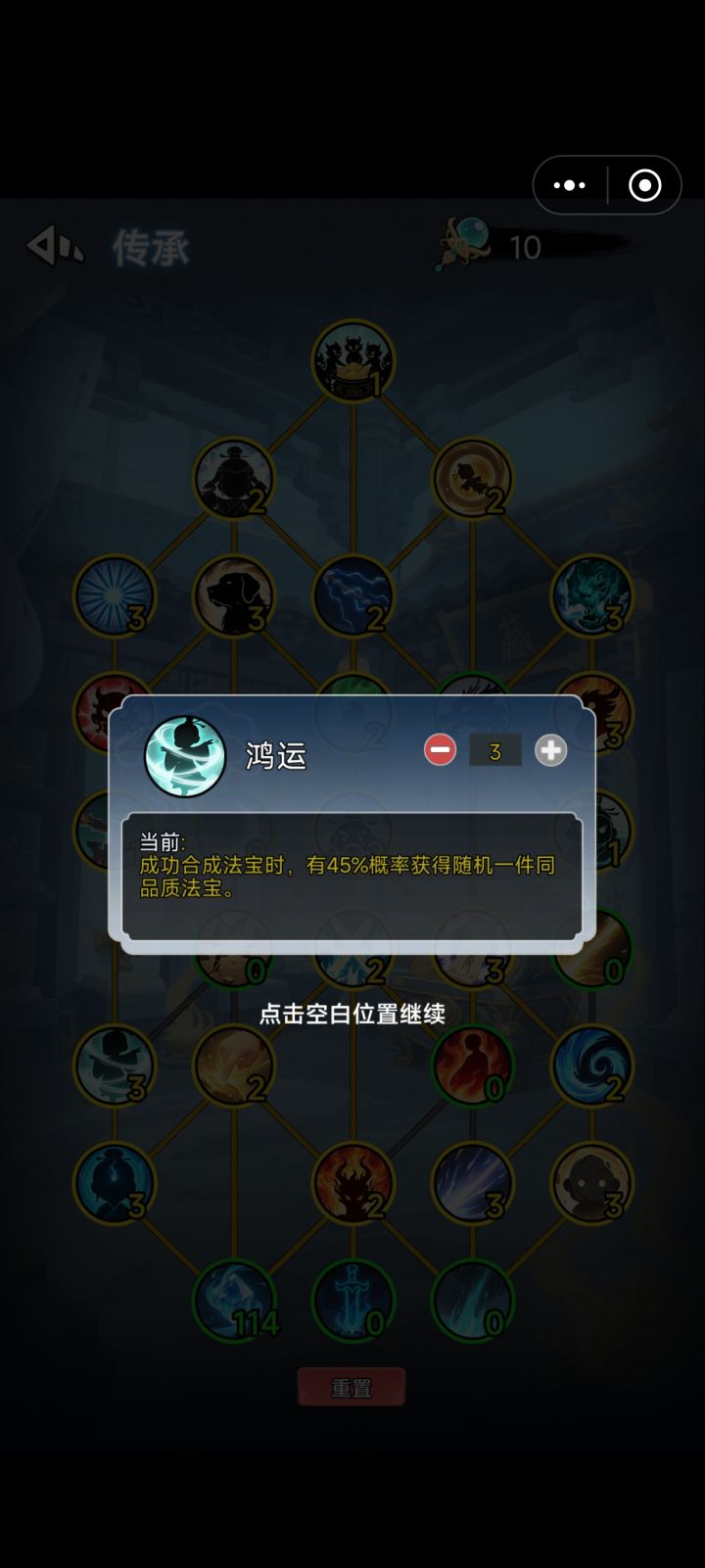 ——这几天太眼馋大佬们的神品、混沌的神器,数值爆炸,馋哭,这两天一直在翻攻略贴,试过移魂夺魄,试过渡厄真言天帝血等流派,可惜没有足够的数值,爬塔可太难了。——特别看到大佬们的神器都神品起步的,——不过,柳岸花明,论坛里有个大佬说了一句话,给我我很大启发(谢谢大佬,虽然我忘记了你的昵称)大概意思就是“充分利用法术和物理伤害就好了”