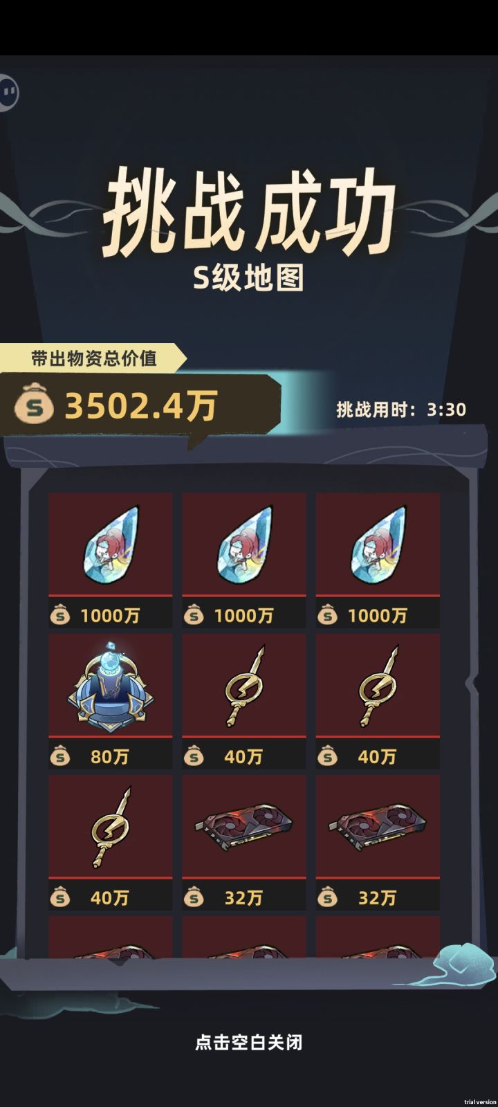 总体评价:作为搜打撤的小游戏,总体做的还是有板有眼的。平常没事可以玩两局消遣消遣。后期把打的部分完善一下,如果条件允许,作者可以加个pvp。毕竟王者+搜打撤的组合,做得好的话这游戏会是王炸