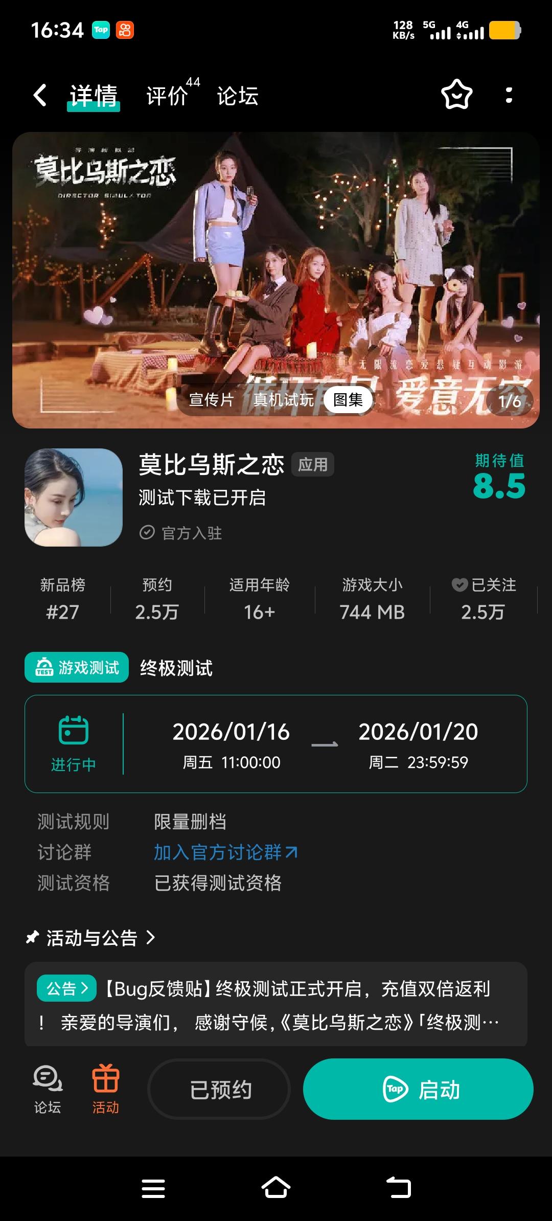 亲爱的导演们,感谢守候,《莫比乌斯之恋》「终极测试」于2026年1月16日正式启动!诚邀您踏入这场交织甜蜜与悬疑的光影轮回。本帖为Bug反馈专用贴,体验过程中如遇到任何问题,欢迎随时通过下方评论。或官方Q群1029116458告知我们,我们会在第一时间给于回复。我们将在参与反馈的评论中,于1月29日11:00,抽取3名,送出应用本体激活码(6000蔷薇)。此激活码可在公测后一个月内可用,
