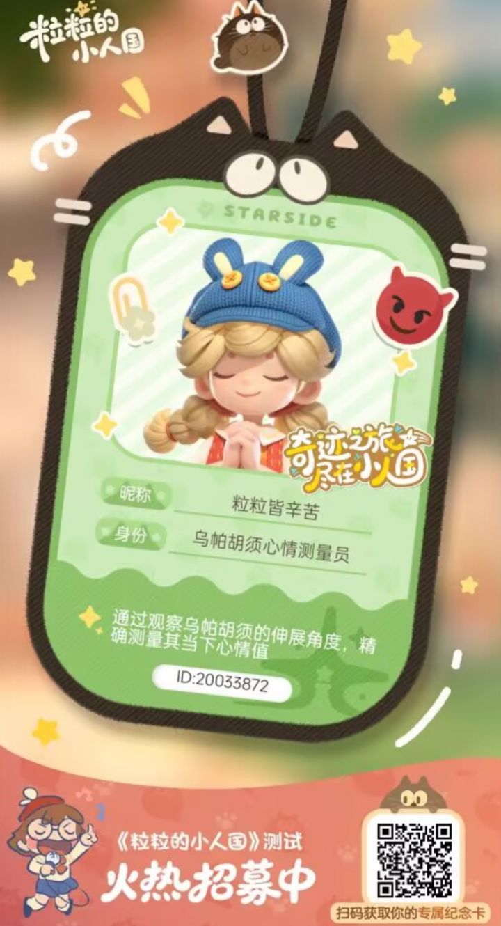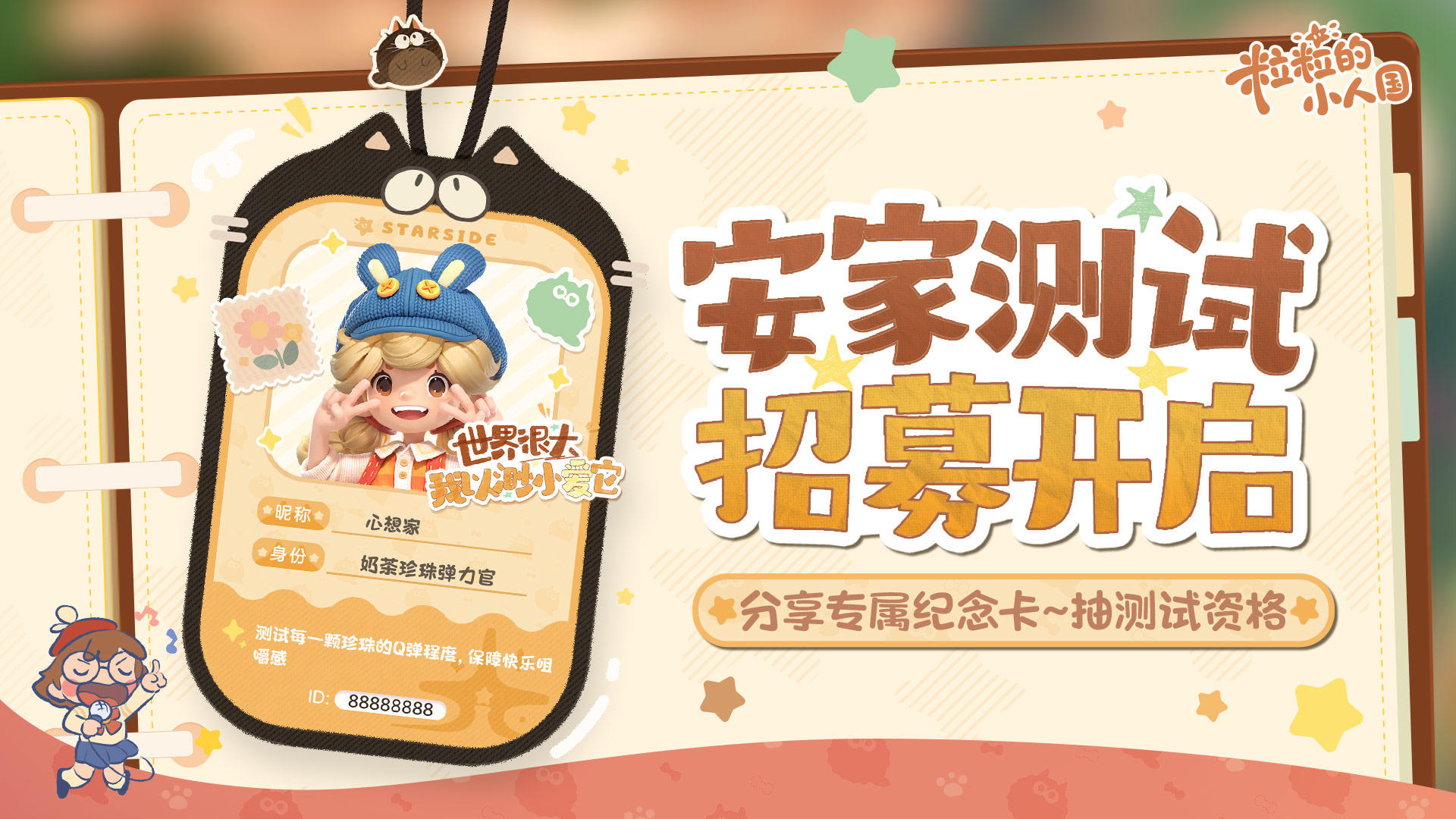 《粒粒的小人国》安家测试招募正式开启!心想家们都前往报名了嘛~ 🌟 测试招募报名通道点击链接: 滴栗会认真整理每一份入住申请✨好奇这一次,心想家会是什么身份?快来晒出你的专属纪念卡,和大家分享吧! 🌟 活动时间即日起 - 2026年2月27日 🌟 活动规则完成测试招募活动,并在评论区分享心想家的专属纪念卡~滴栗将为10位心想家锁定「安家测试资格」、并送出粒粒的小人国PU徽章1