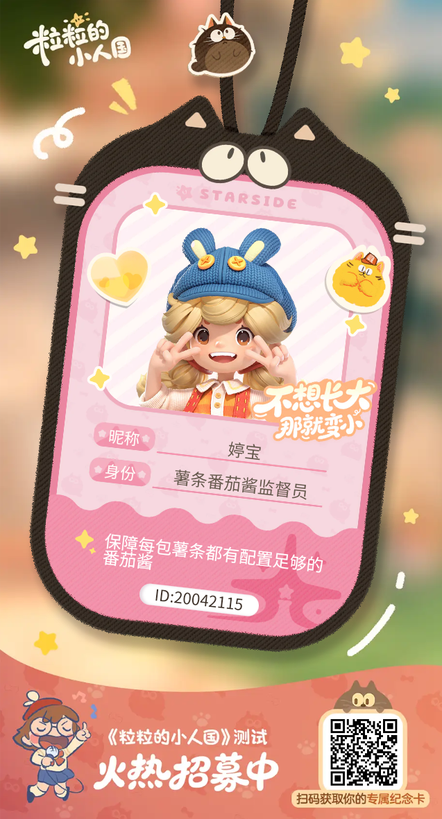 尊敬的《粒粒的小人国》官方测试评审团队: 您好!自2025年9月游戏全平台首曝起,我便被这款游戏独有的皮克斯绘本风治愈画面和微观视角探索日常的创新设定深深吸引,第一时间完成了TapTap全平台预约,始终密切追踪游戏的每一次动态更新,对“日常小物改造家园”“与粒粒趣味互动”的核心玩法满怀期待,现特此提交「安家测试」内测资格申请,希望能成为首批体验者,为游戏优化贡献自己的一份力量。#粒粒的小人国