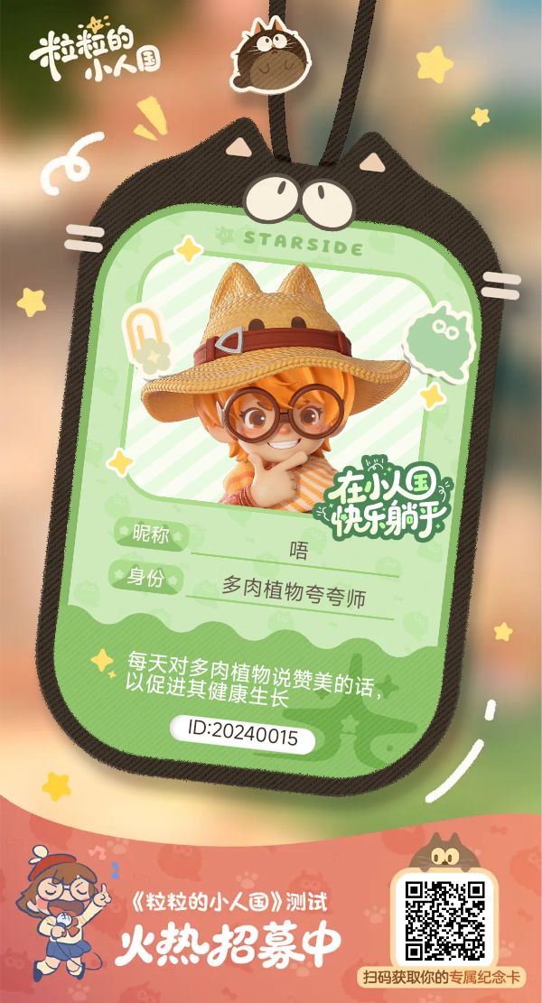 【正式申请】申请《粒粒的小人国》内测资格:愿做一名细致的微观世界共建者 尊敬的官方团队: 我是一名自9月24日游戏首曝以来便持续关注的玩家。《粒粒的小人国》以其独特的“皮克斯绘本风”美术和“微观视角探索日常”的创意,深深吸引了我。每次看到新内容发布,都让我对这个温暖、治愈的微小世界更加向往。 我为何如此期待并想参与测试? 因为我不仅是被游戏吸引,更是被其背后的理念打动: 1. 视觉与情感