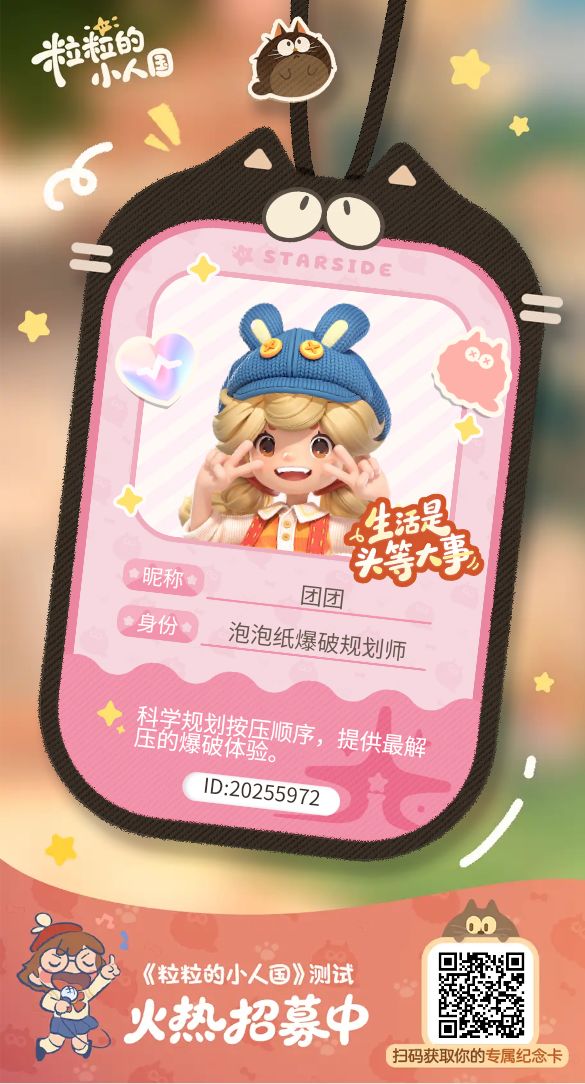 分享一下我的专属纪念卡!从看到小人国的治愈画风就开始蹲测试,尤其喜欢微观世界里藏着的各种小细节,已经把官号发的动态翻了好几遍。平时就爱泡在模拟经营游戏里,还会自己研究布局和玩法技巧,如果能拿到测试资格,一定会认真记录每一个体验和反馈,把喜欢的内容分享给更多人~