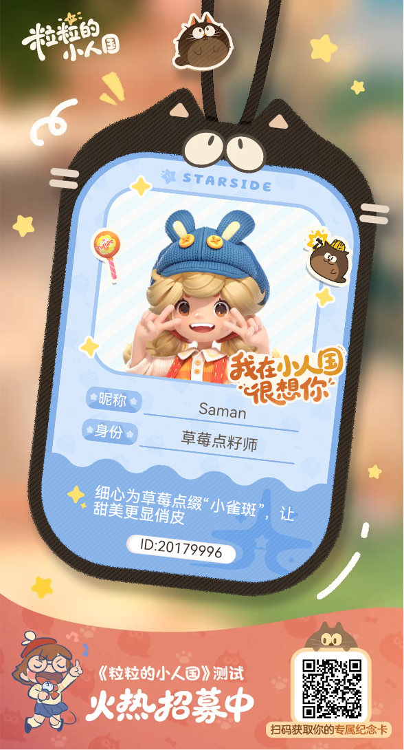 【正式申请】申请《粒粒的小人国》内测资格:愿做一名细致的微观世界共建者 尊敬的官方团队: 我是一名自9月24日游戏首曝以来便持续关注的玩家。《粒粒的小人国》以其独特的“皮克斯绘本风”美术和“微观视角探索日常”的创意,深深吸引了我。每次看到新内容发布,都让我对这个温暖、治愈的微小世界更加向往。 我为何如此期待并想参与测试? 因为我不仅是被游戏吸引,更是被其背后的理念打动: 1. 视觉与情感的治愈力: