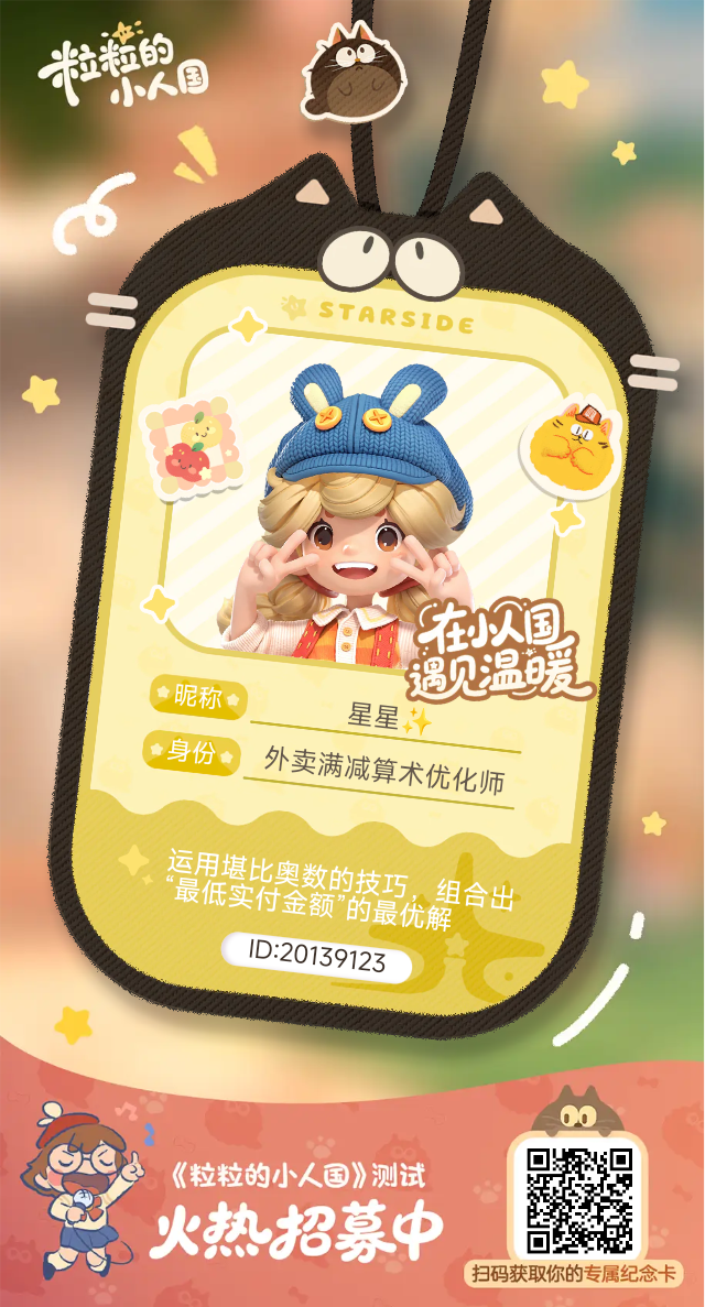 《粒粒的小人国》安家测试现已开启报名,心想家们可点击下方链接参与测试招募活动,即有机会获取测试资格。点击链接:【安家测试】招募更多信息请查看图片详情,这个春天,一起在摇粒乡安个小家!《粒粒的小人国》预约现已开启点击下方卡片,完成预约领取专属礼包👇