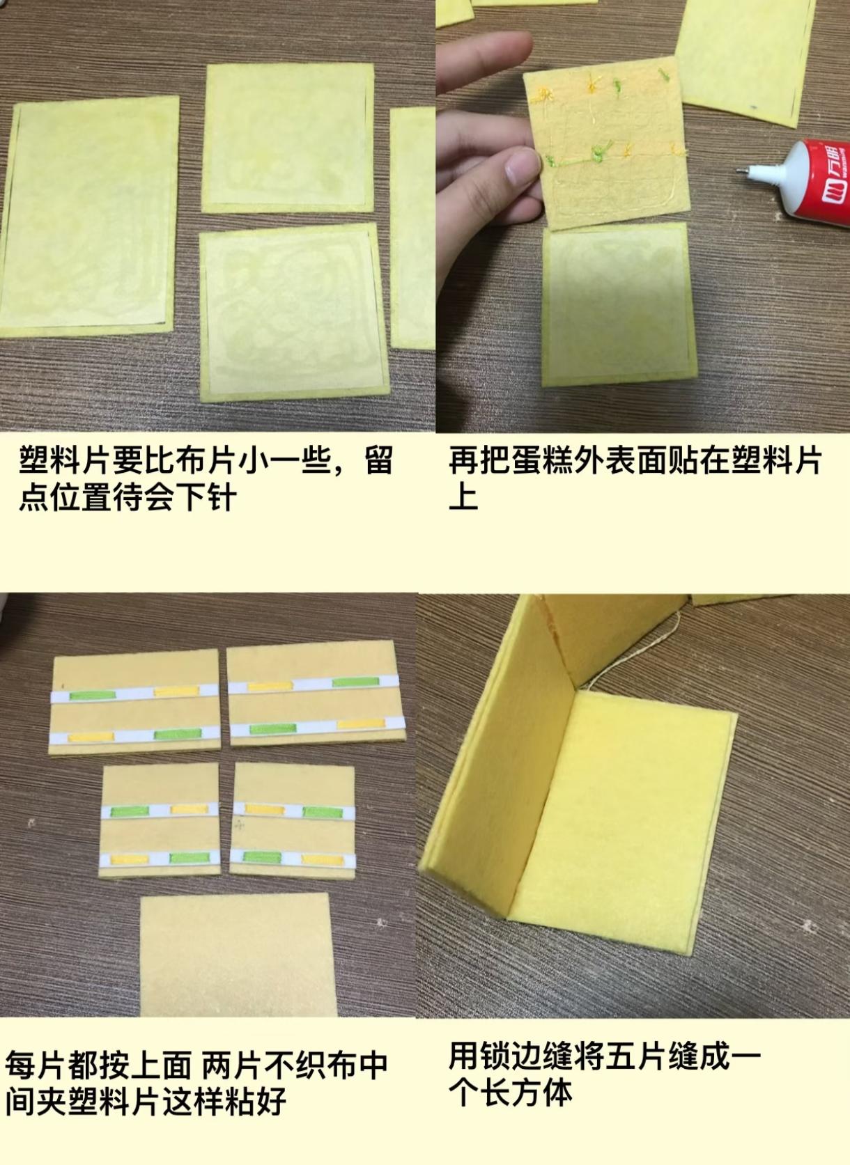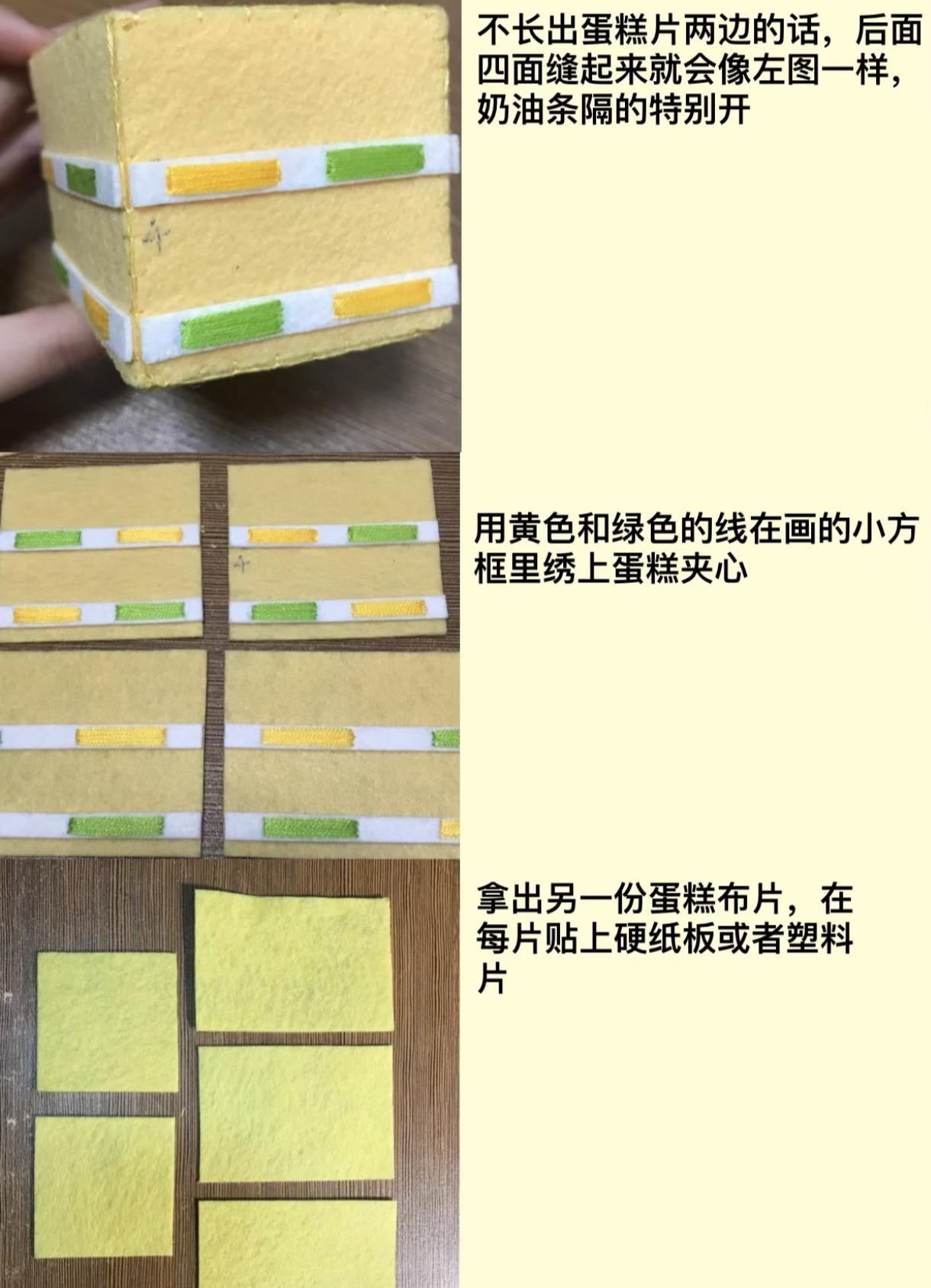 用不织布做了一个可以装东西的蛋糕盒子蛋糕的造型是参考游戏《粒粒的小人国》里面美好年代餐厅里的小蛋糕做哒