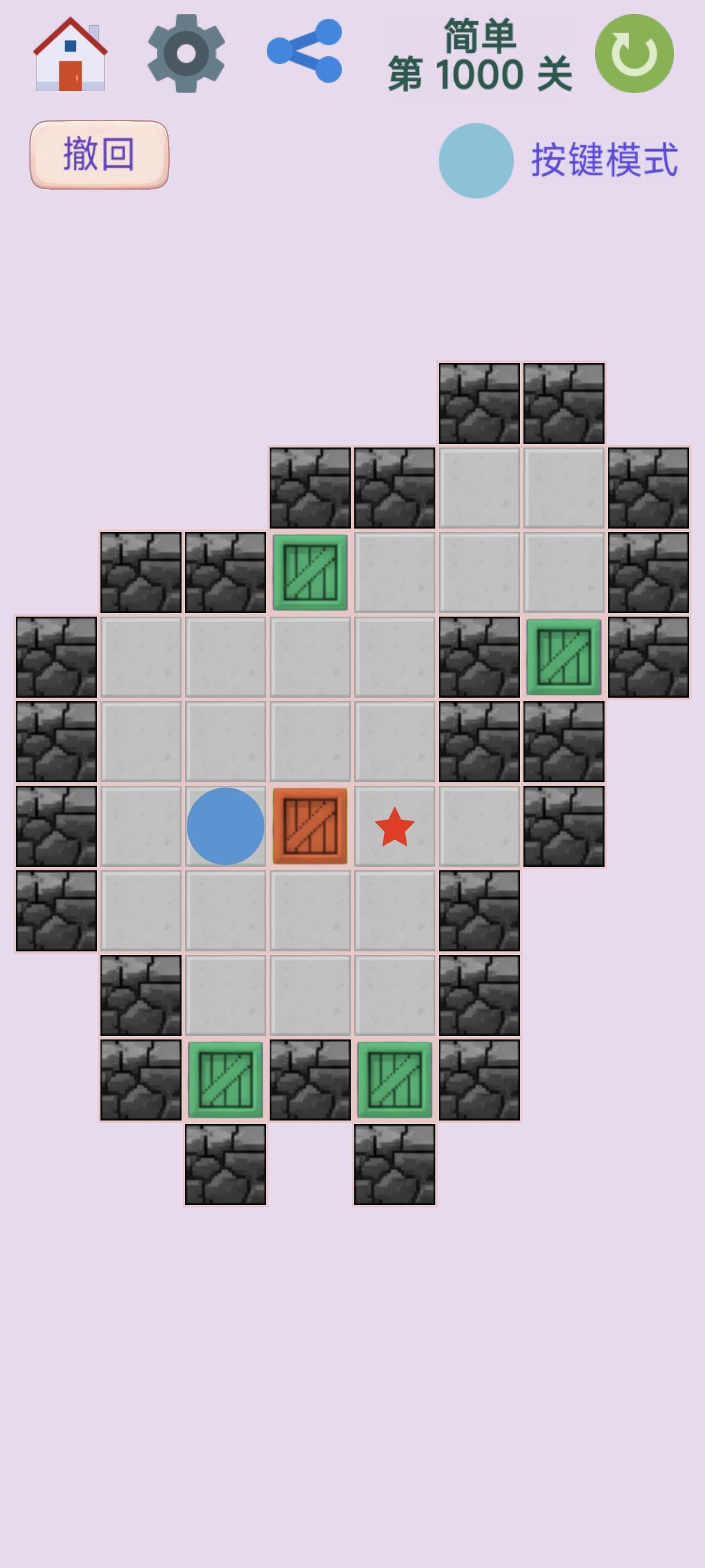 这个游戏当消遣还可以,但是每日挑战感觉有点简单,虽然看后面每个难度有一千关,但就目前我体验的而言,有点过于简单了,以前我玩的那些推箱子撤回几百次都不一定能过,现在这个看一下初始图就大概知道步骤了,可能是个人感受吧,有点简单。
