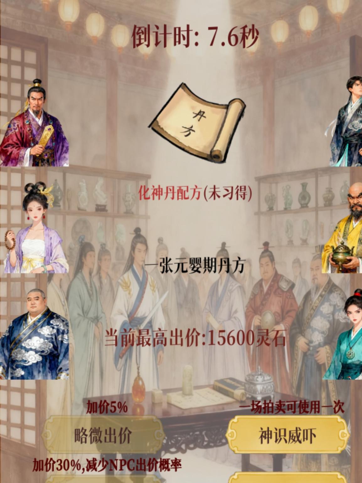 游玩须知:存档都在本地,不要随意删除游戏文件支持云存档,但云存档需要你手动上传,无自动上传本地存档会自动存档,只有进地图时会自动存档、突破境界时会自动存档、坊市刷新时会自动存档不满足自动存档条件时建议养成手动存档的好习惯(最轮椅的来了,有一万左右的灵石去拍卖行,买一本五指拳心剑)如何开局:属性分配+10点体魄,开始修仙,领兑换码兑换码在评论区,领完有7000灵石,10个红烧肉,触发