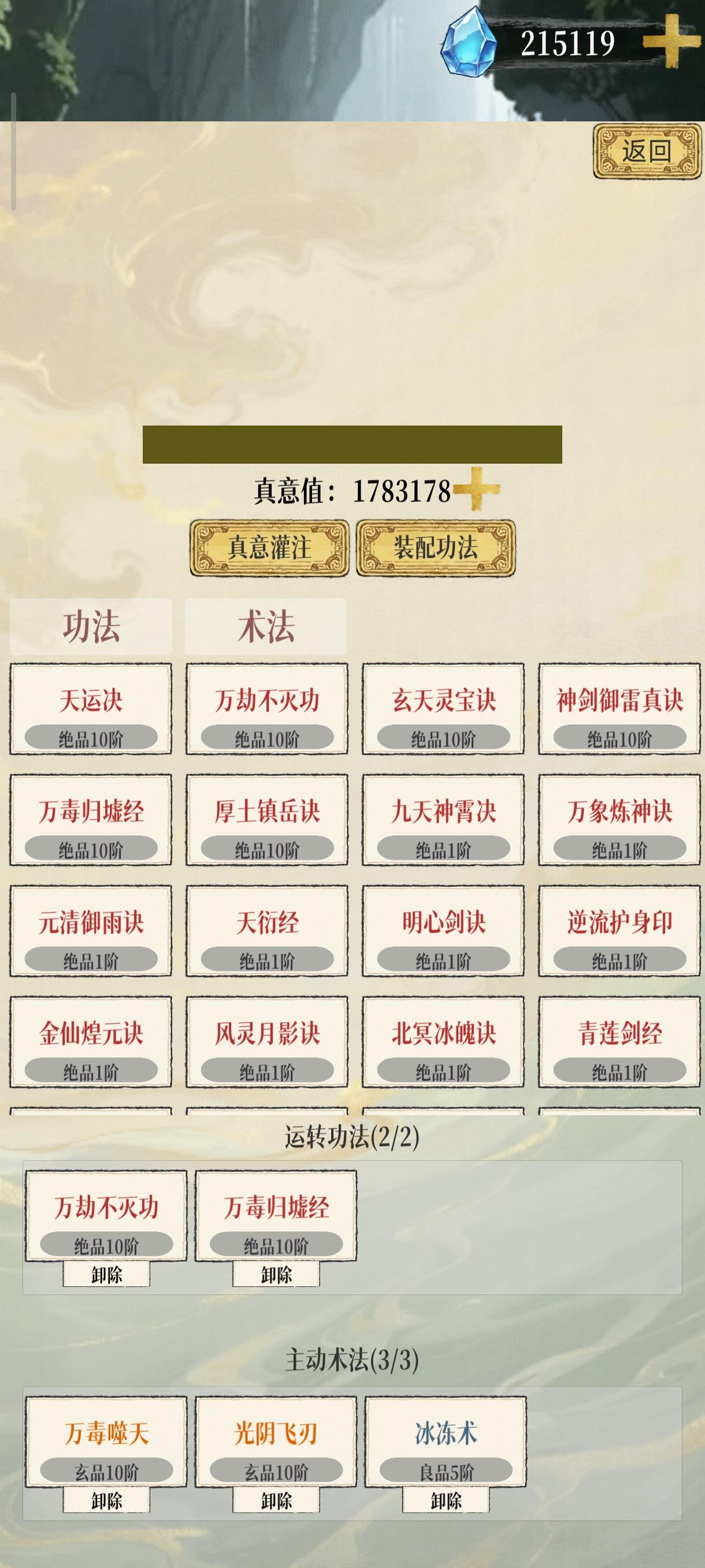 本来一开始是想按以前看到的攻略,用一背包四阶符把BOSS轰死,结果实际上根本打不中,盾都打不破。于是还是回到了用毒,只不过实际打起来发现根本挂不上去,好在毒经有加血和蓝的上限,能增加容错,靠着一背包的血药把BOSS磨死了。PS:万毒噬天最好不带,带其他必中的功法,万毒会清掉中毒层数,虽然现在中毒伤害也不怎么高就是了