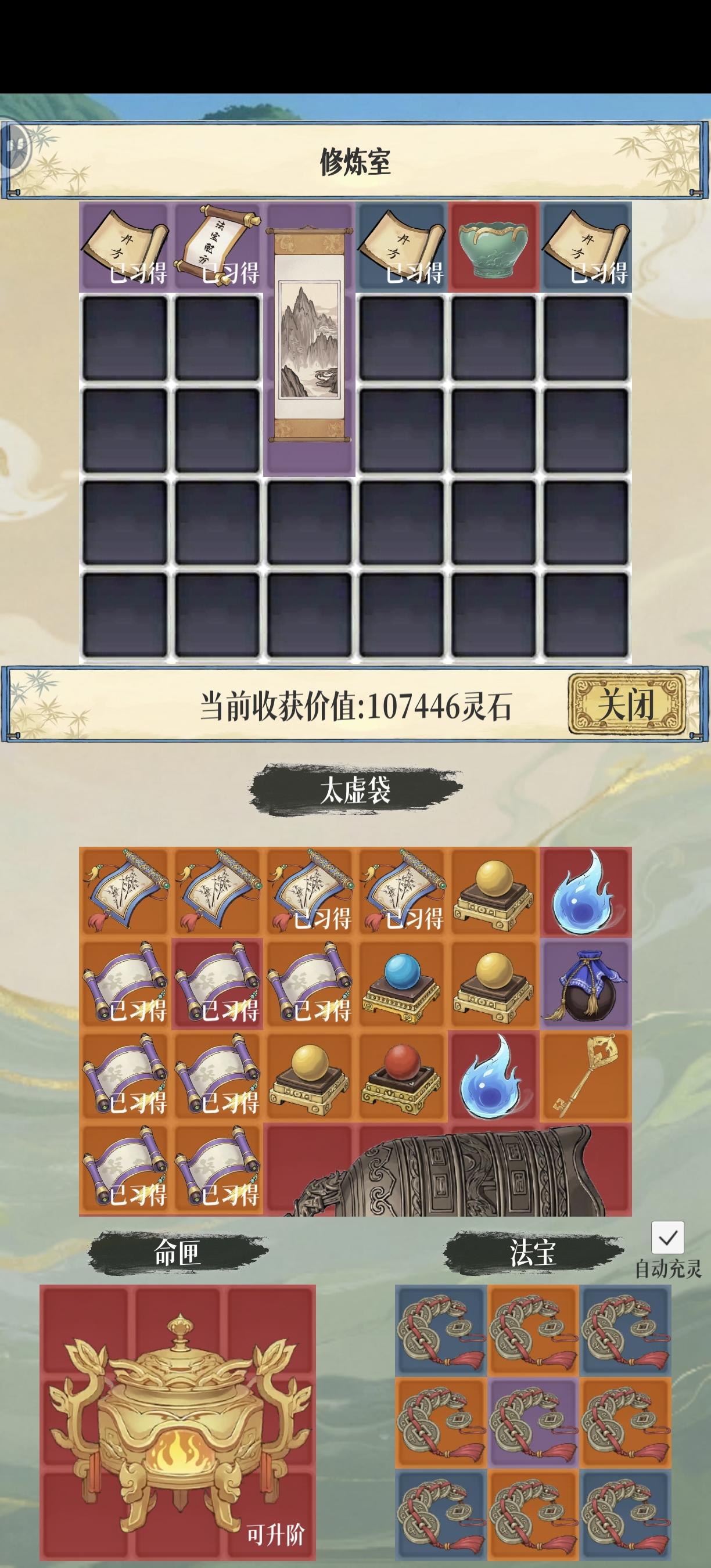 此世刚解锁无底渊就不自量力去挑战天骄了,结果也显而易见,进图1900+的异常命中根本挂不上禁绝和中毒,就连最简单的饕餮都打不过,只能退而求其次打挑战,好在挑战难度还是比较容易的,打BOSS掉了虚无归源诀(好像是混沌掉的),这功法附加属性是异常命中,功法本身也是攻略BOSS的神器,再加上化神灵宝刷了几条异常命中的词条,进图2300+,有法宝增加异常命中后可以稳定挂禁绝,之后就是简单的挂机了。PS: