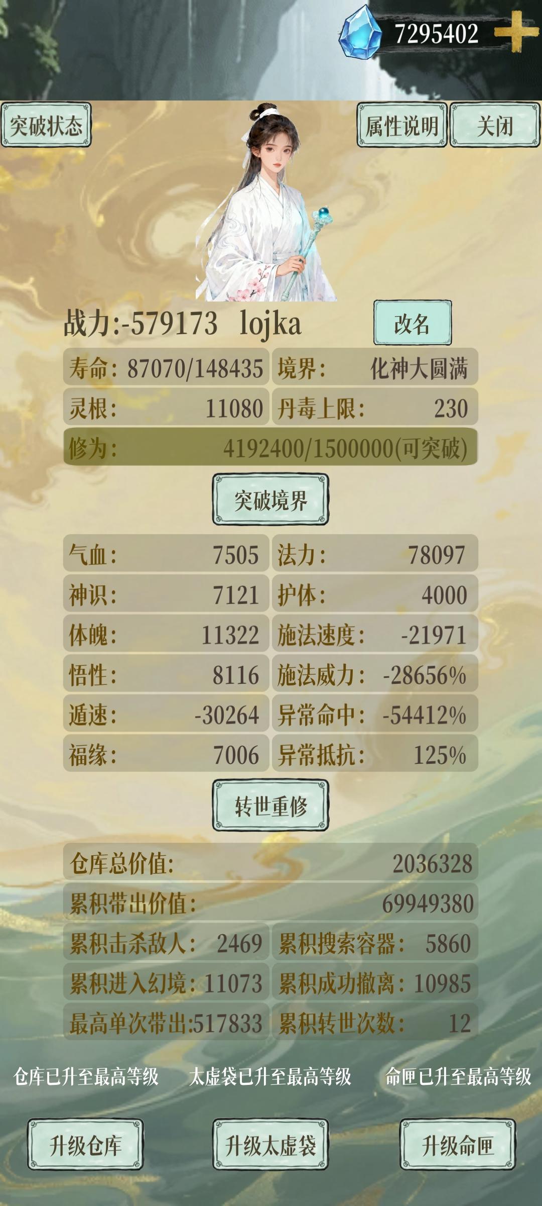 虚无归元还是太超标了。核心虚无归元(功法)+腐心掌(术法)+毒瓶(法宝)出伤。神剑御雷(功法)+九霄雷劫(术法)+光阴飞刃抢条。玄天灵宝决(功法)+玄天灵宝阵(术法)增加法宝频率。