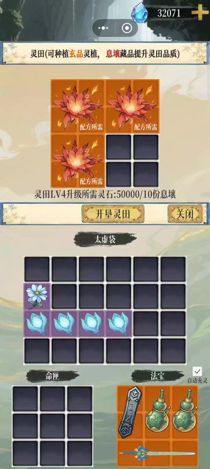 虚无归元还是太超标了。核心虚无归元(功法)+腐心掌(术法)+毒瓶(法宝)出伤。神剑御雷(功法)+九霄雷劫(术法)+光阴飞刃抢条。玄天灵宝决(功法)+玄天灵宝阵(术法)增加法宝频率。