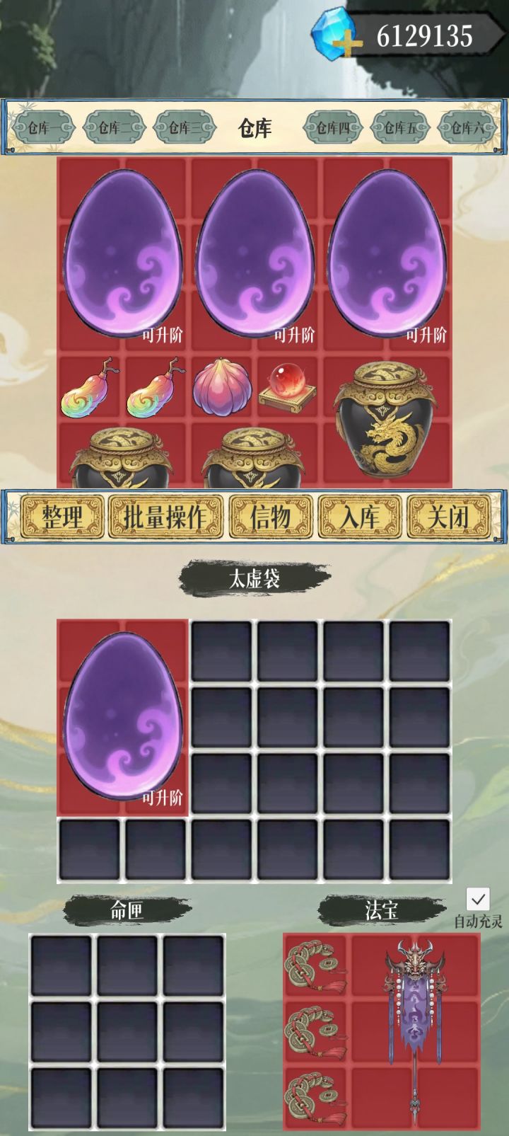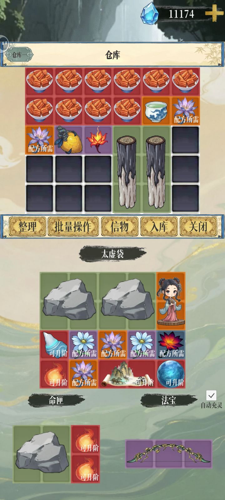 本来可以挂机一小时的,但是被丹药占仓库,只能挂机半小时