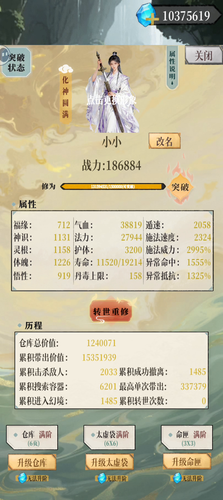 首先这些都是我摸爬滚打几十小时加看了无数攻略总结出来的心得你是否还在为没有大红而苦恼呢接下来让我来给你讲解这个游戏的各种机制与如何像上☝️一样获得这些大红1.总体的规划开局天命点加满体魄这样可以让你抗揍,然后把兑换码兑换出来分别是:中秋快乐国庆快乐国庆继续快乐生日快乐幻境修仙666其余两个兑换码对我的帮助不大所以这里没写前期灵石主要是购买丹药,但别全花了,到时候拍