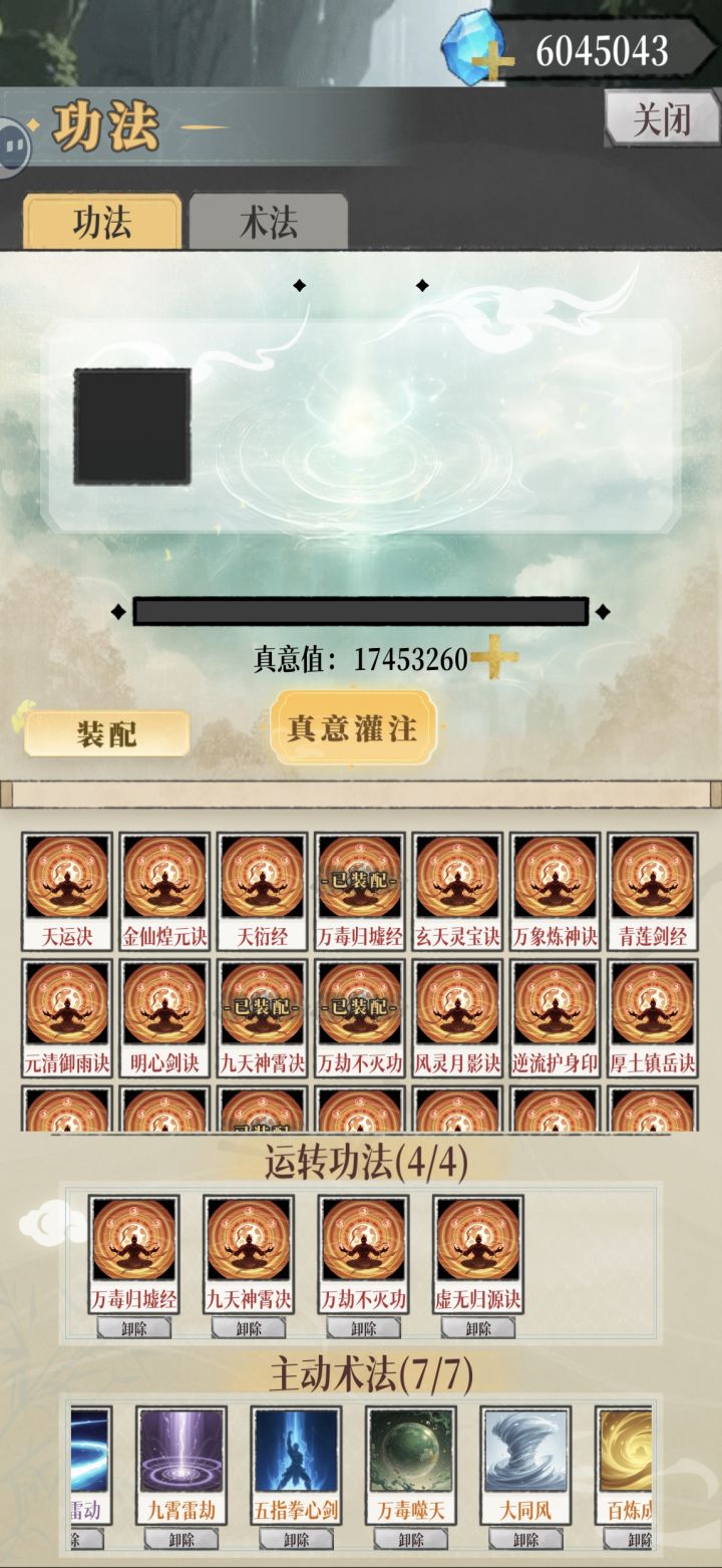 无限流思路(图一):无限推条禁绝让对面不能动,春秋剪(法宝)无限叠buff,幻兽提供七个开局buff无限循环,无限回血无限回蓝。核心法术(图二):虚无归元(功法)+腐心掌(术法)+毒瓶(法宝)出伤。 神剑御雷(功法)+九霄雷劫(术法)+光阴飞刃(术法)抢条。 玄天灵宝决(功法)+玄天灵宝阵(术法)增加法宝频率。 万劫不灭功(功法)提供:滋养-回血法宝(图三):万毒瓶,春秋剪,马良笔,