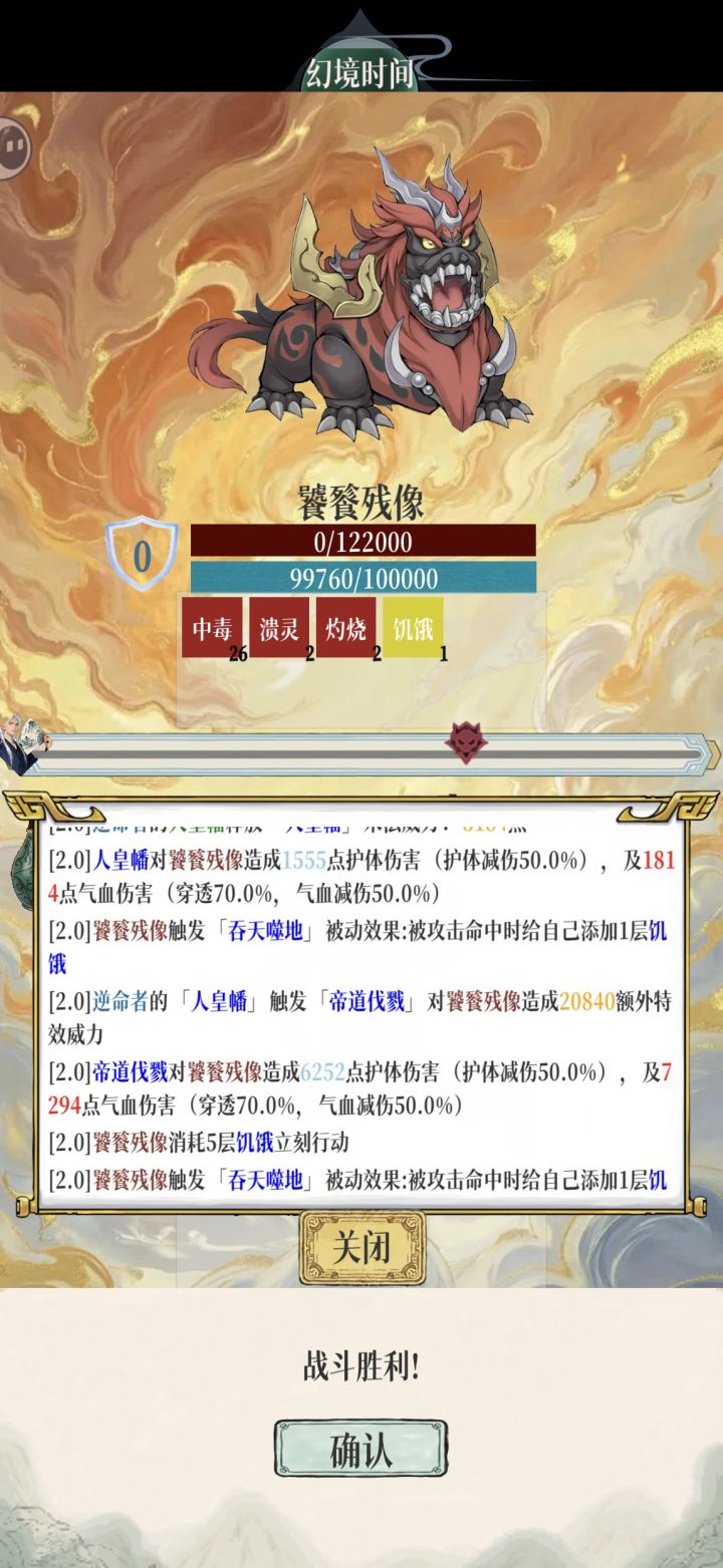 我看没人用人皇幡啊,我来发个人皇幡的。除了混沌要注意自身中毒,其他还是能挂机过。