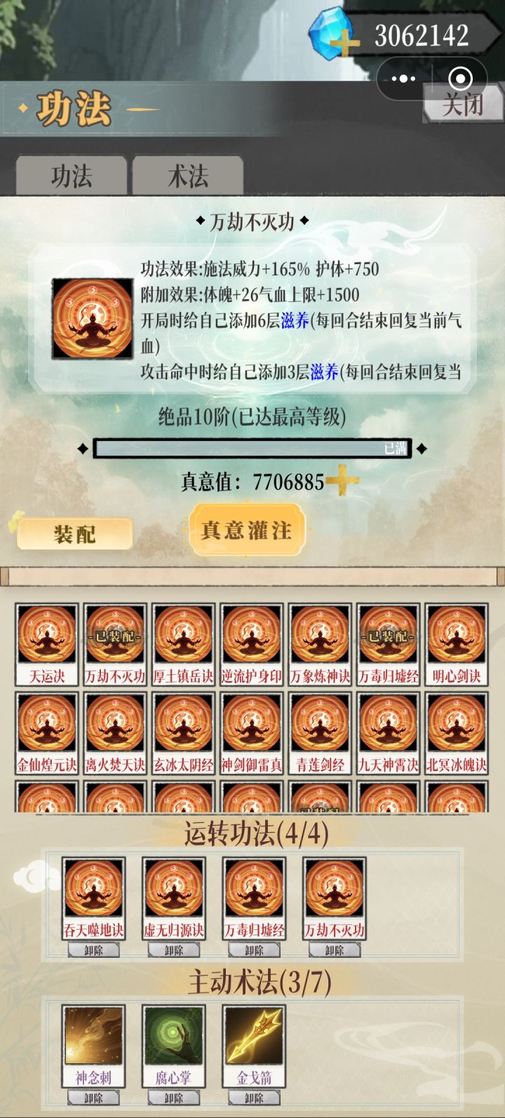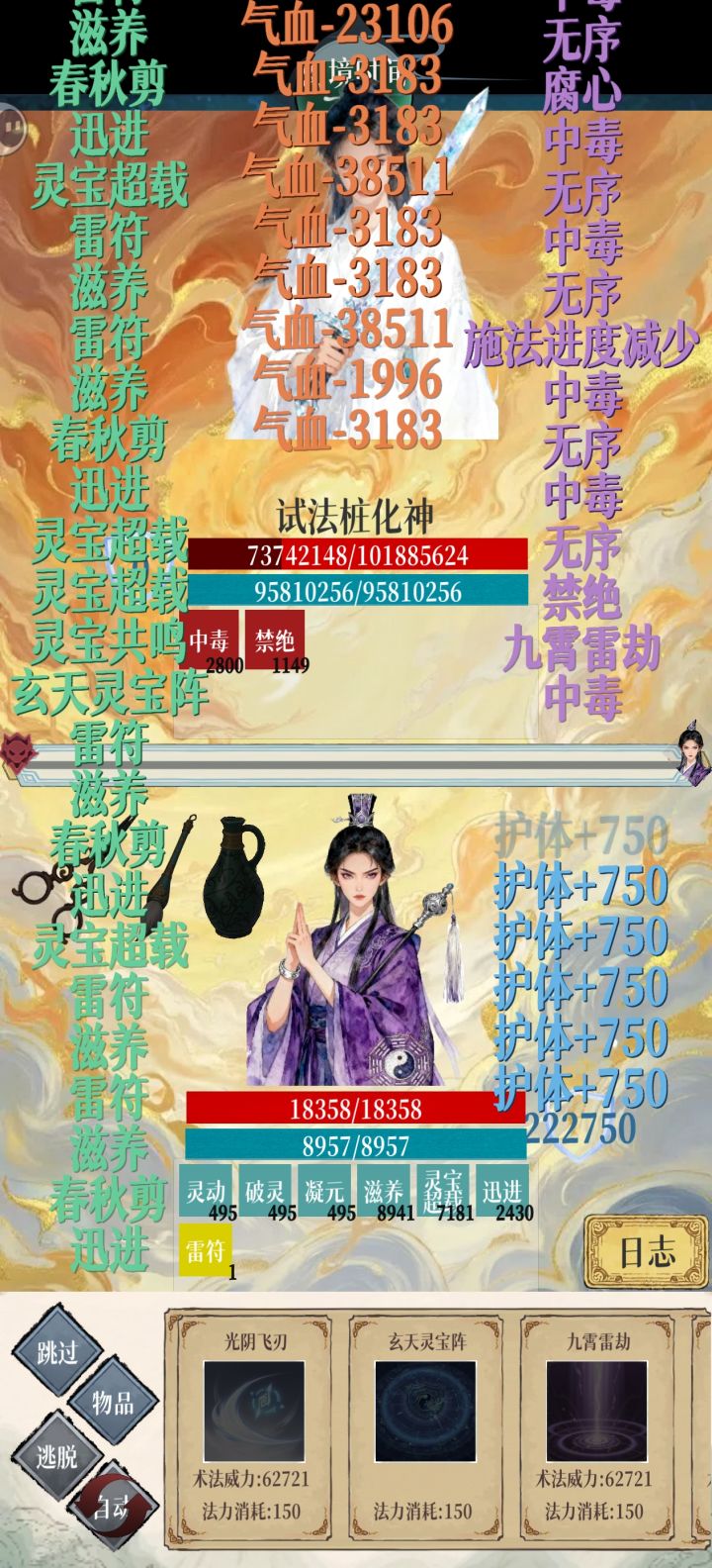 虚无,饥饿,滋养,中毒,这套带化灵三弓,只要能稳定上异常,再拉点遁速(遁速不够打不中,没饥饿,封禁跟不上腐心掌),可以五只2分钟内过。玄武15秒内,饕餮20秒内,其他三个20秒多个一点点。属性是天命点全200突破至化神5层,经验不够,全藏品5星。实测法宝不用堆属性也能挂异常。第三个还能换火球术。唯一的问题是混沌概率翻车。没有先手权避免不了。